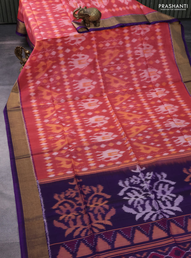 10% OFF Ikat silk cotton saree coffee brown and peach pink with allover ikat weaves and zari woven border Ikat silk cotton saree coffee brown and peach pink with allover ikat weaves and zari woven border Ikat silk cotton saree coffee brown and peach pink with allover ikat weaves and zari woven border