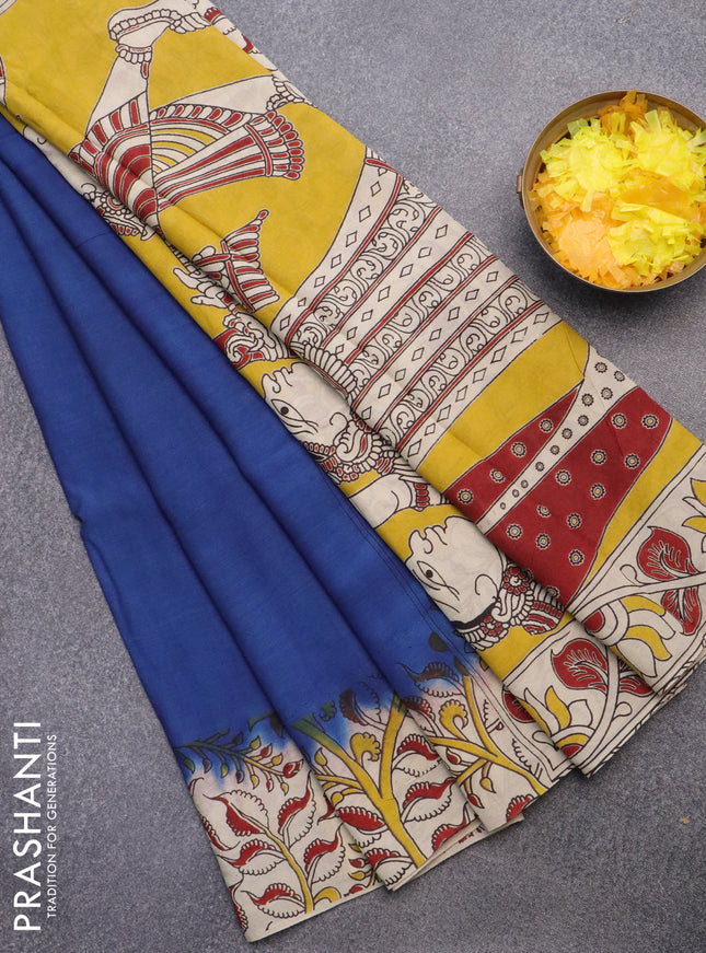 10% OFF Kalamkari semi silk saree blue shade and mustard yellow with allover prints and zari woven border Kalamkari semi silk saree blue shade and mustard yellow with allover prints and zari woven border Kalamkari semi silk saree blue shade and mustard yellow with allover prints and zari woven border Kalamkari semi silk saree blue shade and mustard yellow with allover prints and zari woven border