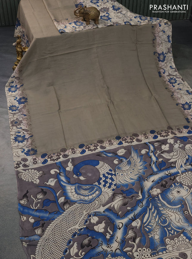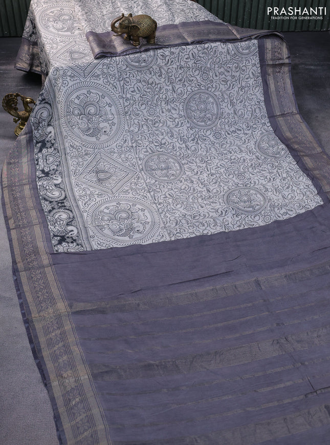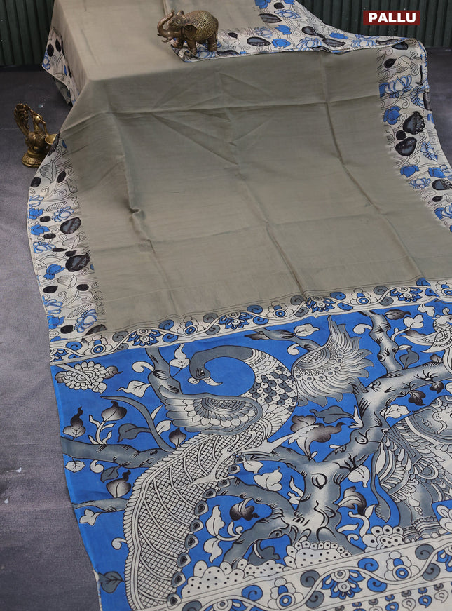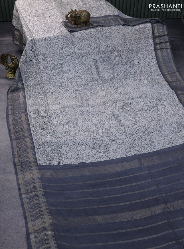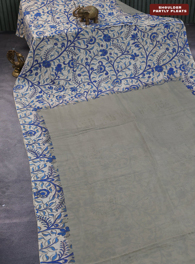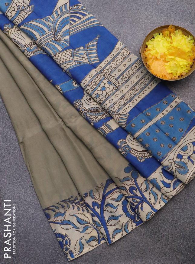 10% OFF Kalamkari semi silk saree grey and blue with allover prints and zari woven border Kalamkari semi silk saree grey and blue with allover prints and zari woven border Kalamkari semi silk saree grey and blue with allover prints and zari woven border Kalamkari semi silk saree grey and blue with allover prints and zari woven border