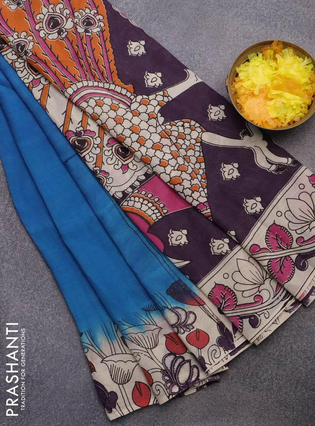 10% OFF Kalamkari semi silk saree peacock blue and blue with allover prints and zari woven border Kalamkari semi silk saree peacock blue and blue with allover prints and zari woven border Kalamkari semi silk saree peacock blue and blue with allover prints and zari woven border Kalamkari semi silk saree peacock blue and blue with allover prints and zari woven border