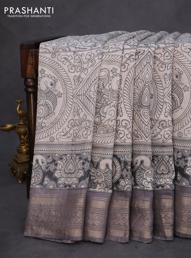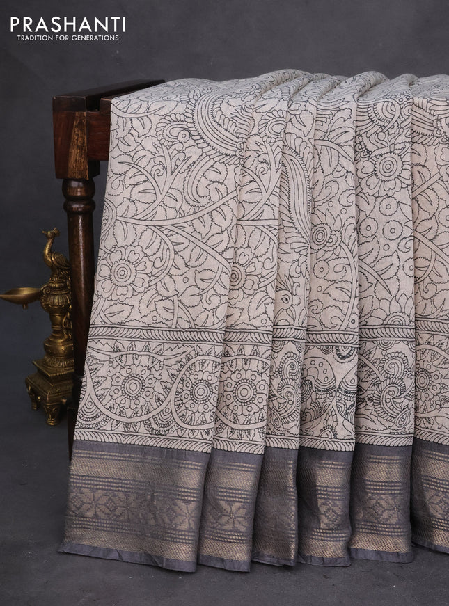 10% OFF Kalamkari semi silk saree grey and black with allover prints and zari woven border Kalamkari semi silk saree grey and black with allover prints and zari woven border Kalamkari semi silk saree grey and black with allover prints and zari woven border Kalamkari semi silk saree grey and black with allover prints and zari woven border