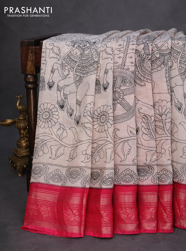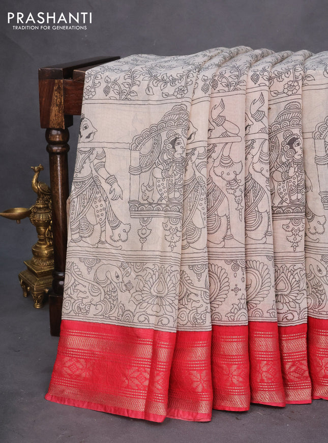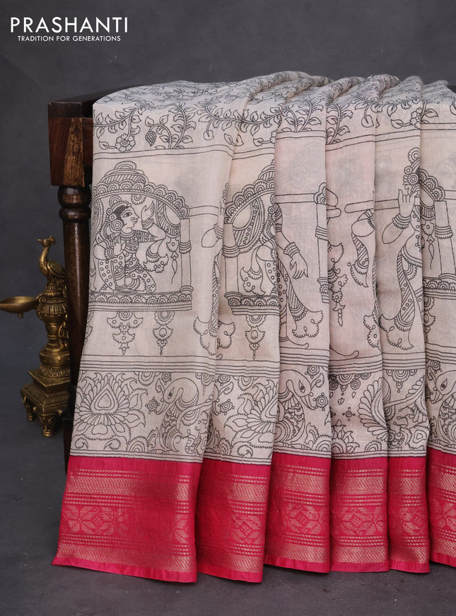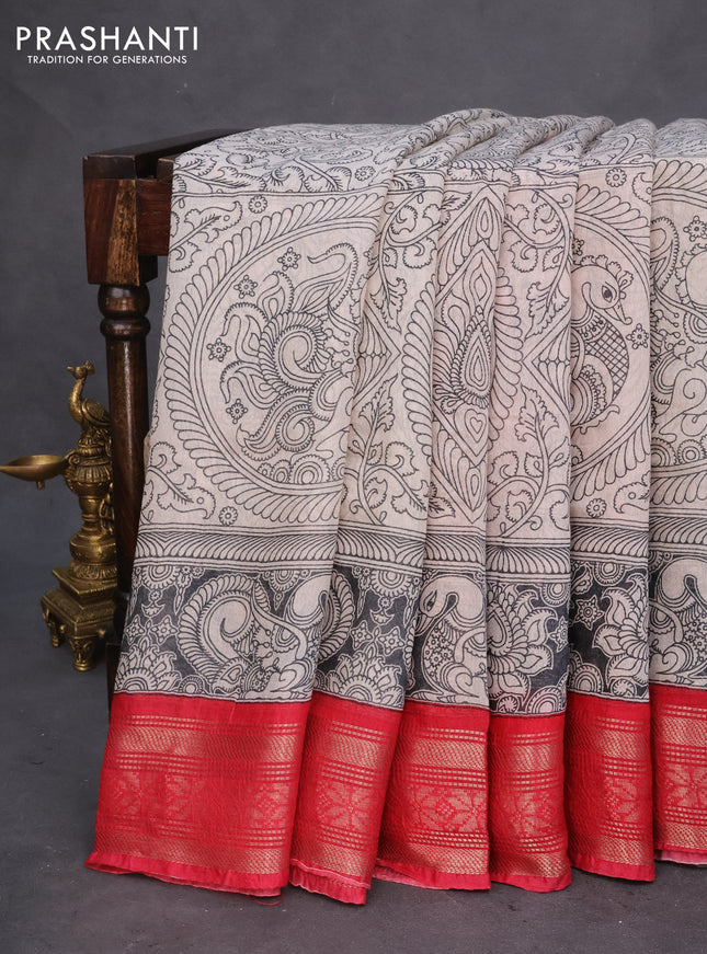 10% OFF Kalamkari semi silk saree beige and black with allover prints and zari woven border Kalamkari semi silk saree beige and black with allover prints and zari woven border Kalamkari semi silk saree beige and black with allover prints and zari woven border Kalamkari semi silk saree beige and black with allover prints and zari woven border