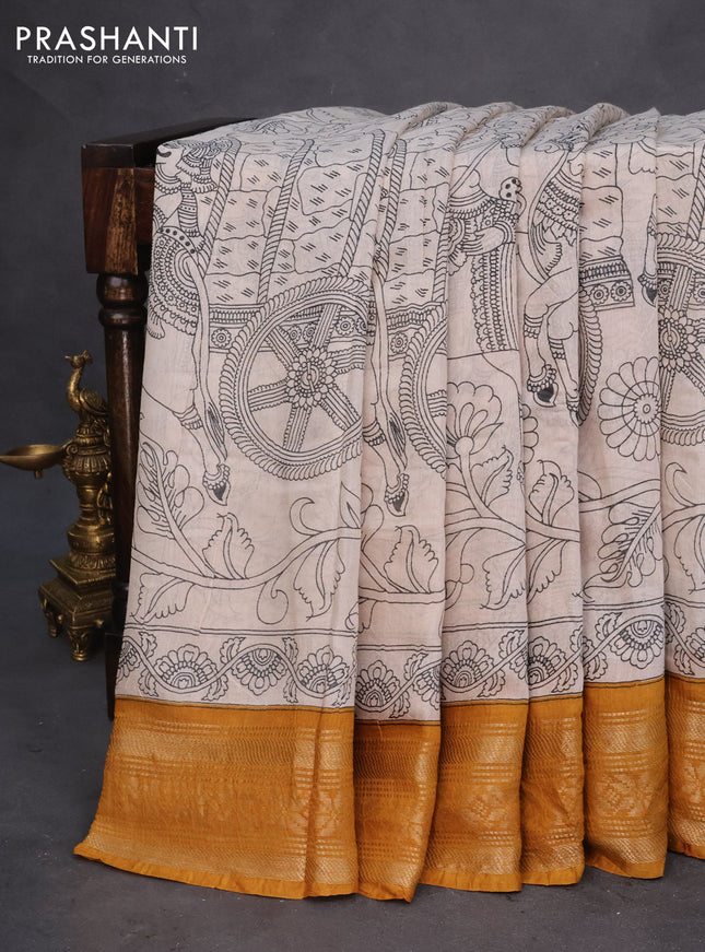 10% OFF Kalamkari semi silk saree beige and mustard yellow with allover prints and zari woven border Kalamkari semi silk saree beige and mustard yellow with allover prints and zari woven border Kalamkari semi silk saree beige and mustard yellow with allover prints and zari woven border Kalamkari semi silk saree beige and mustard yellow with allover prints and zari woven border