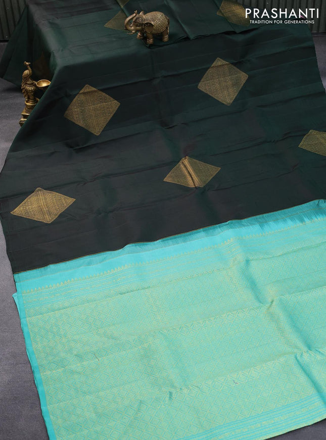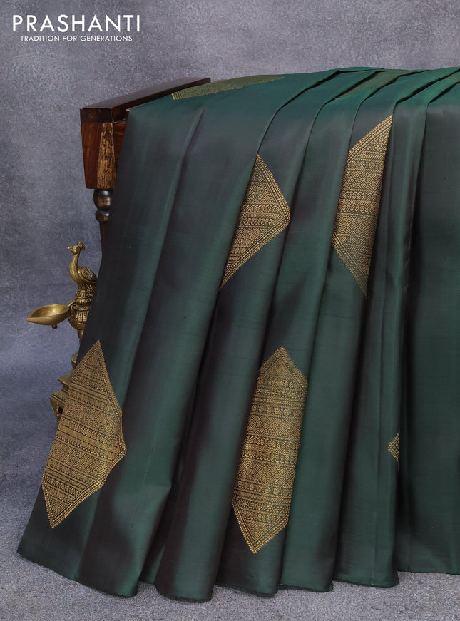 Pure kanchipuram silk saree green and wine shad...