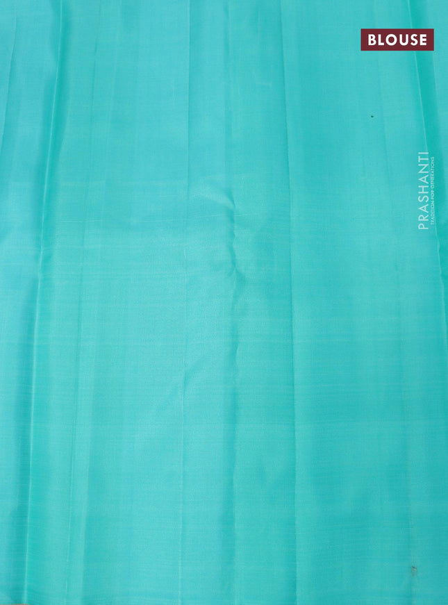 Pure kanchipuram silk saree deep jamun and peac...