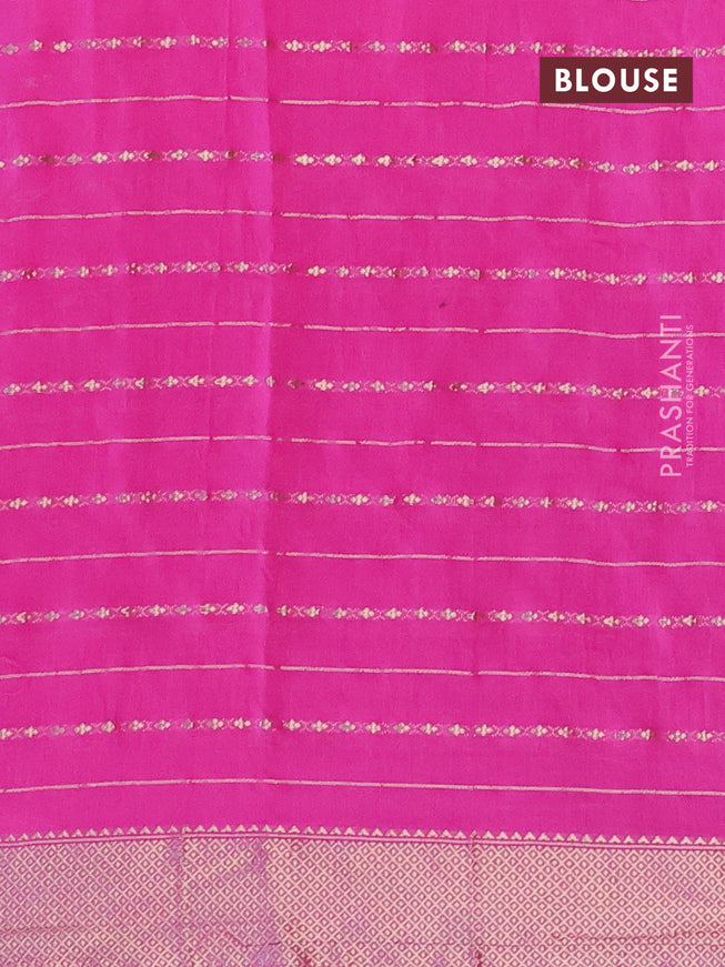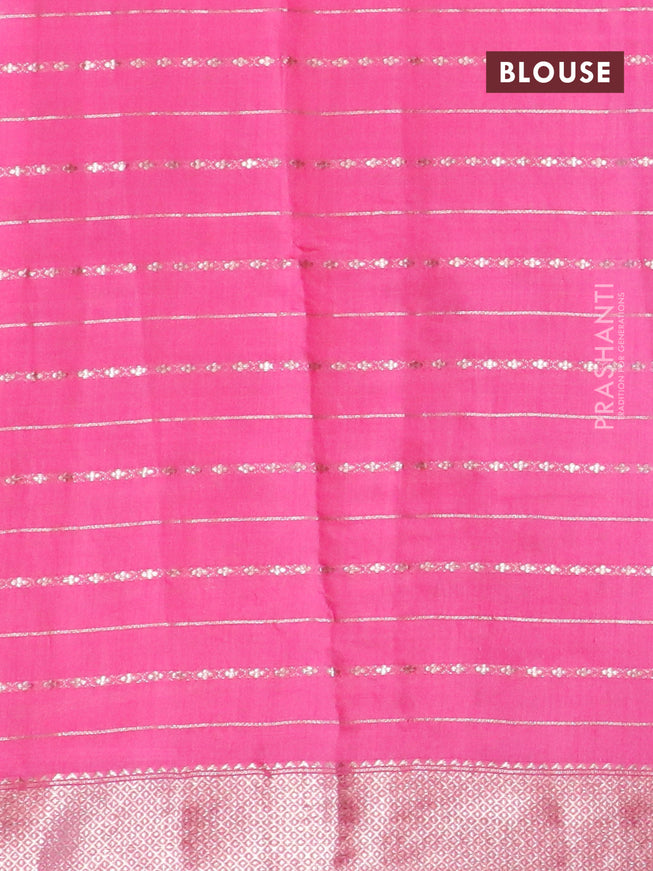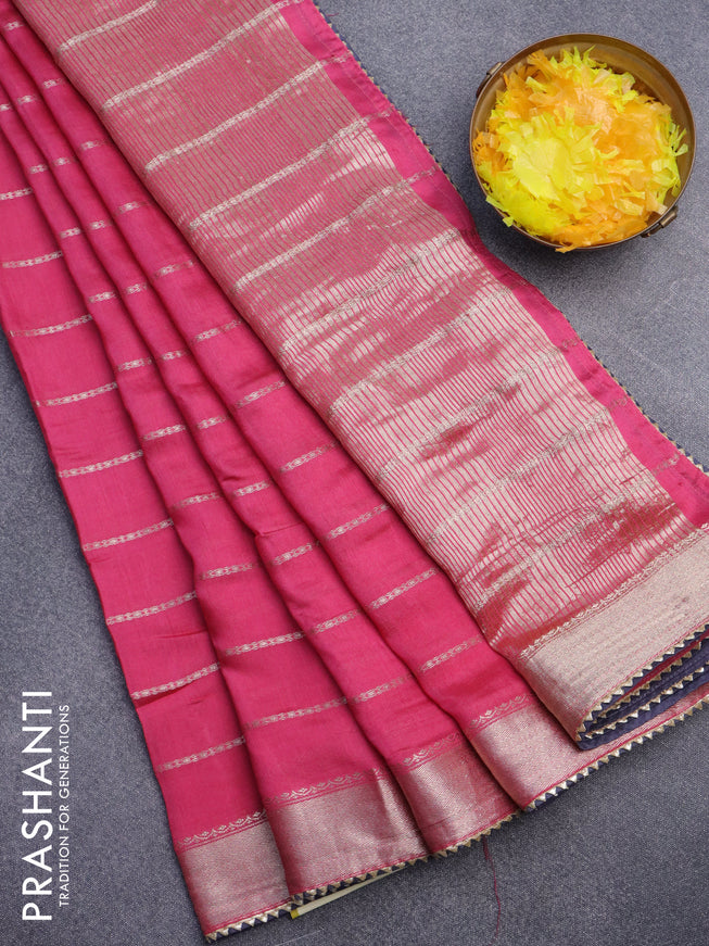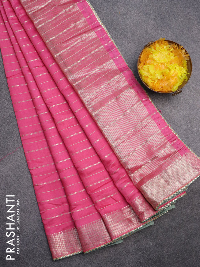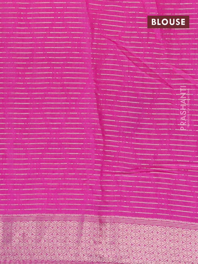Semi chanderi saree candy pink and off white wi...