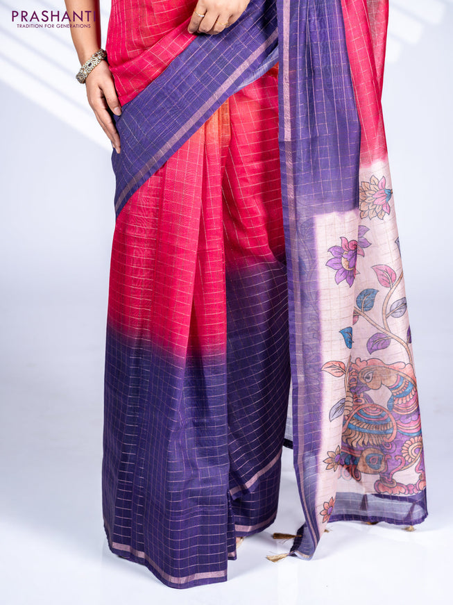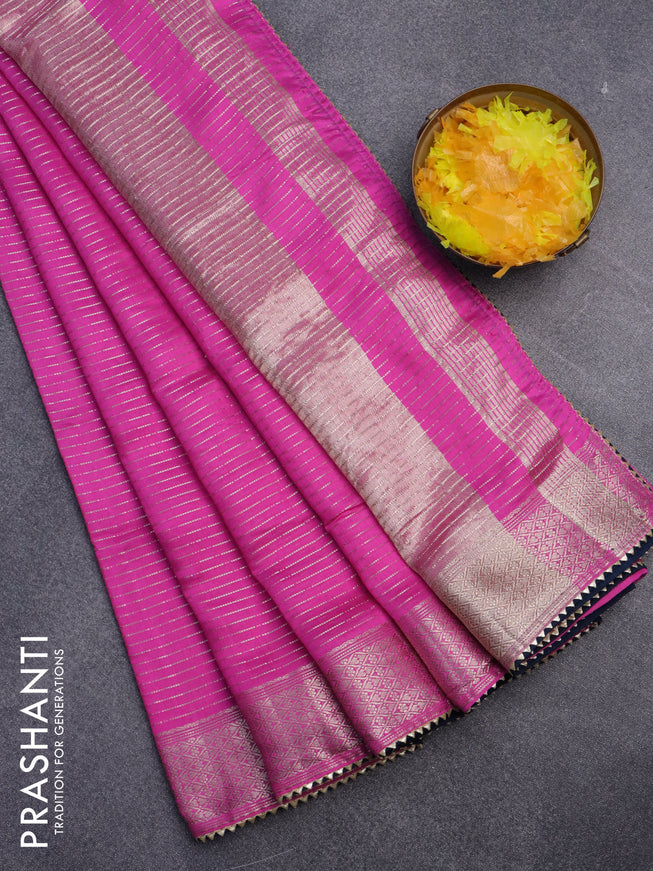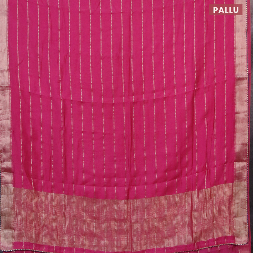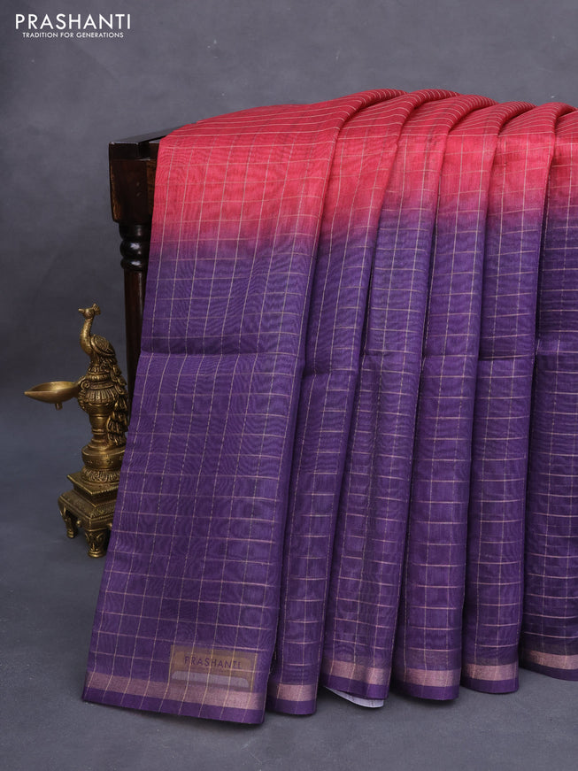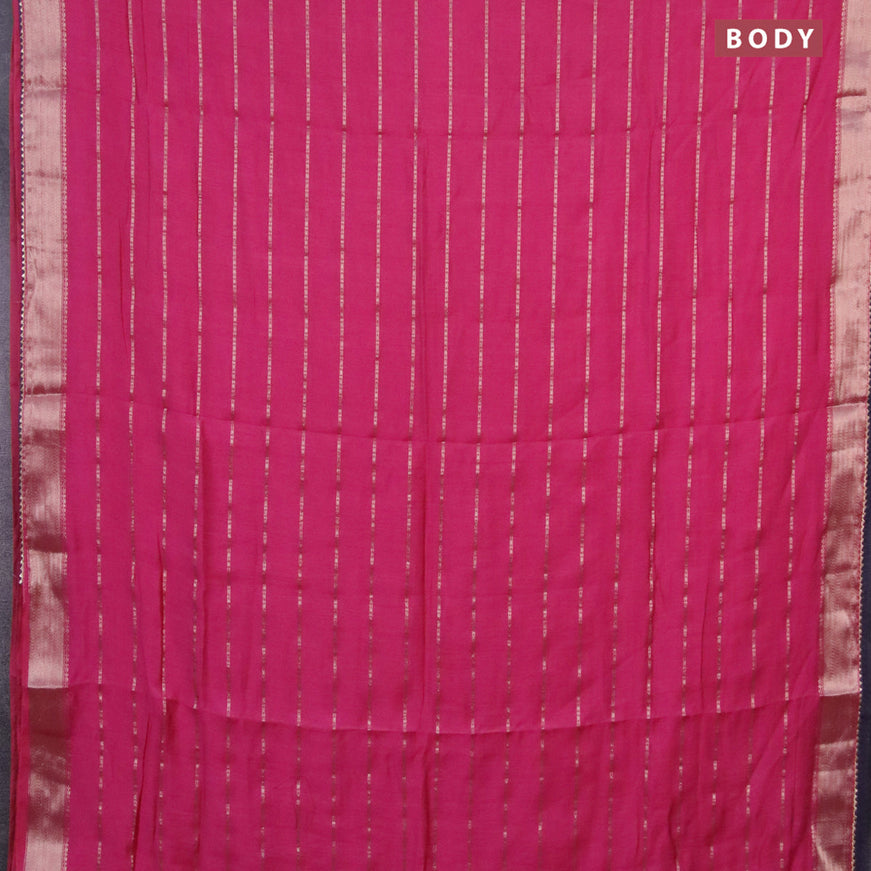 Semi chanderi saree candy pink and off white wi...