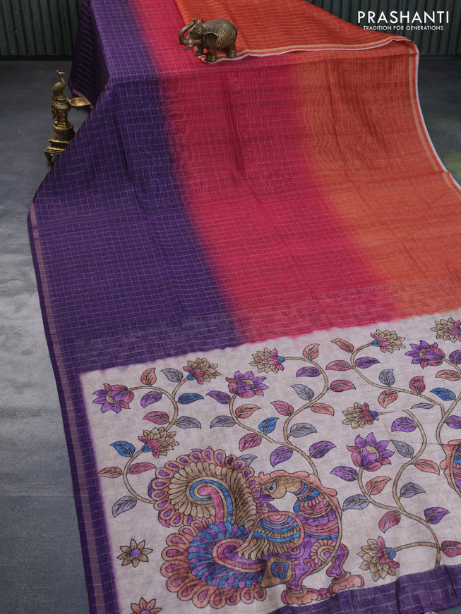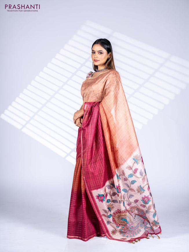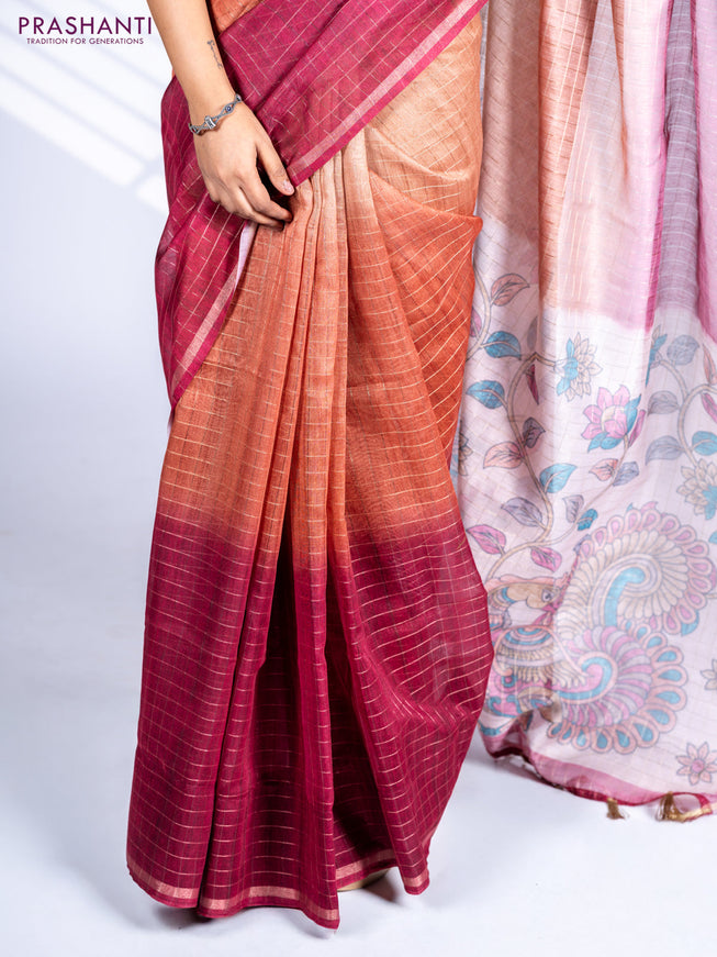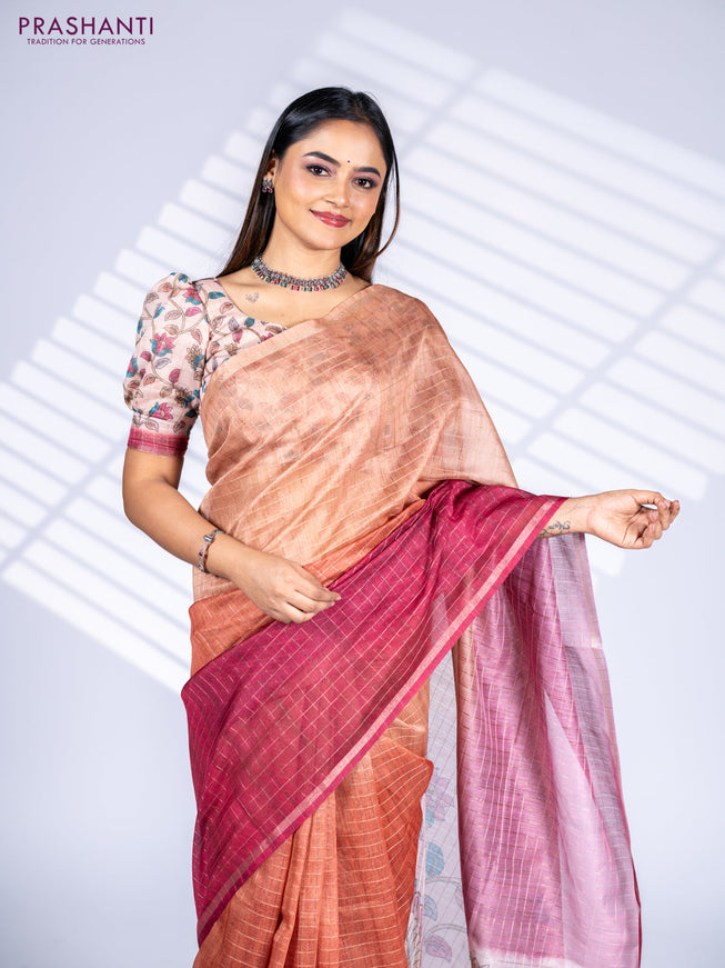 Semi chanderi saree peach shade with allover ka...