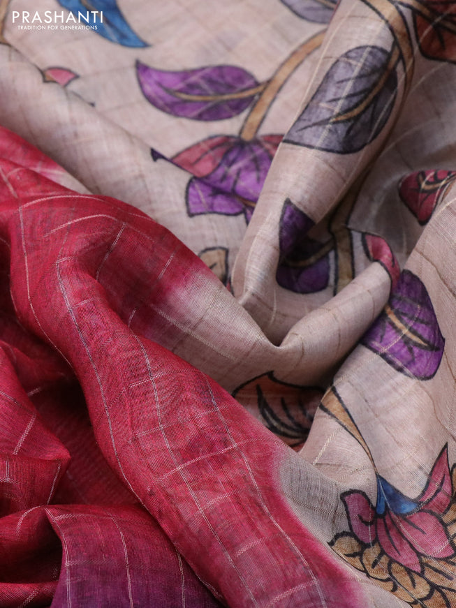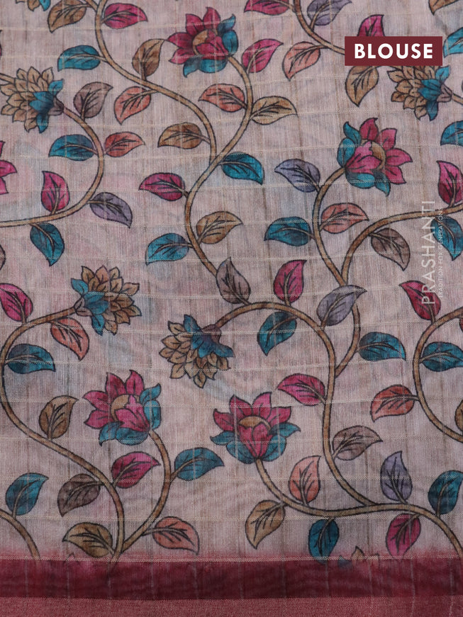 Semi chanderi saree wine shade with batik butta...