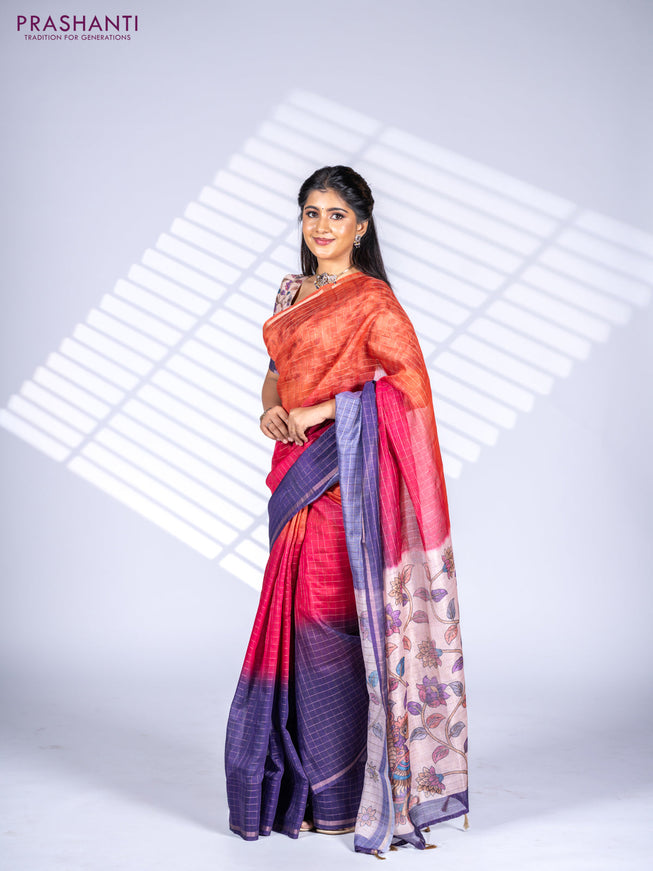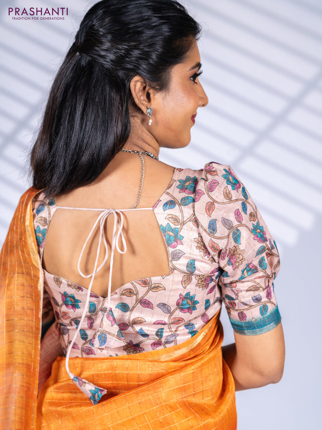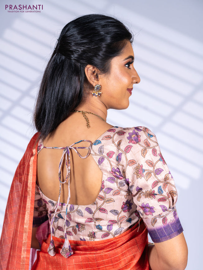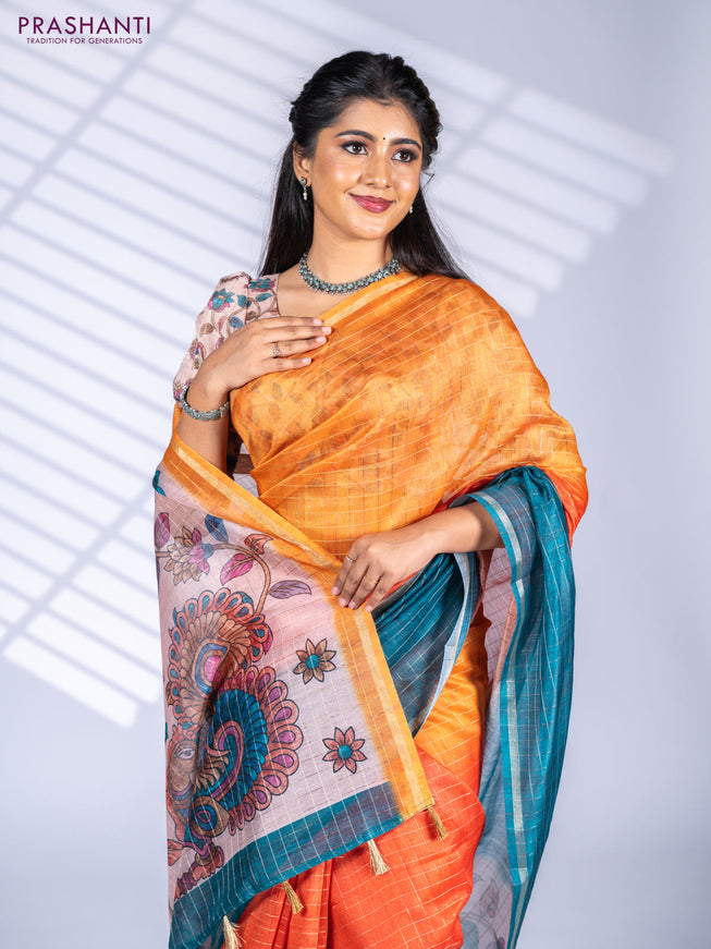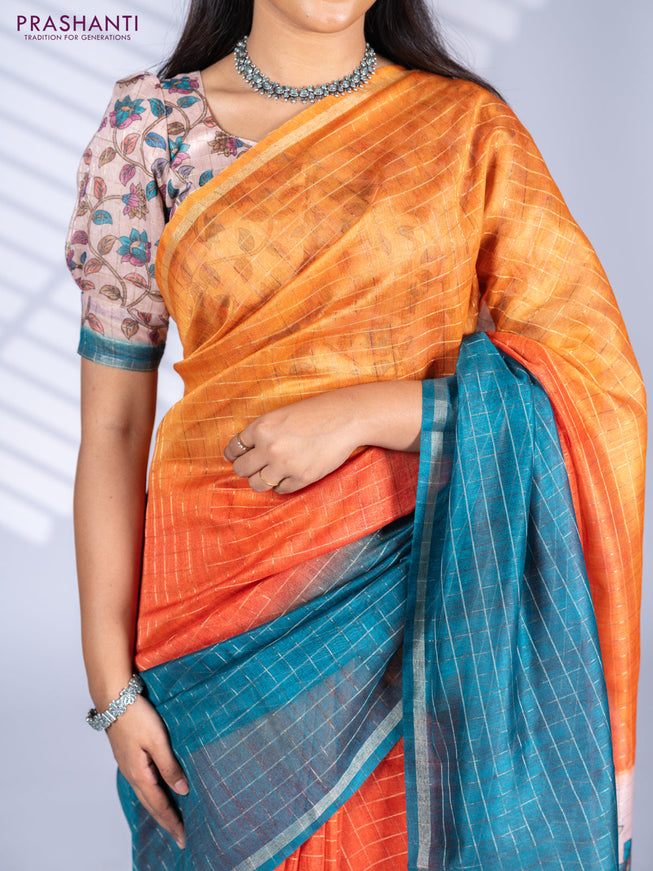 Semi chanderi saree rustic orange with allover ...