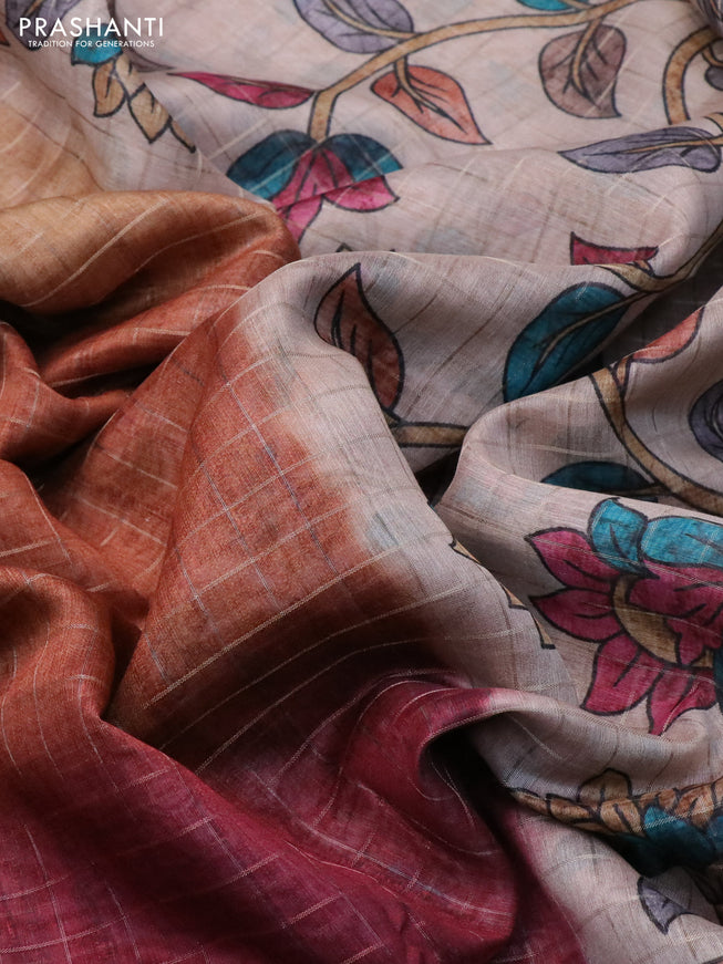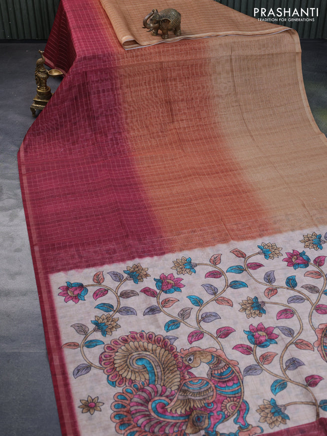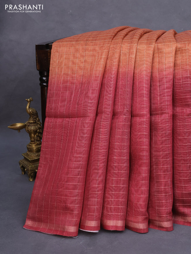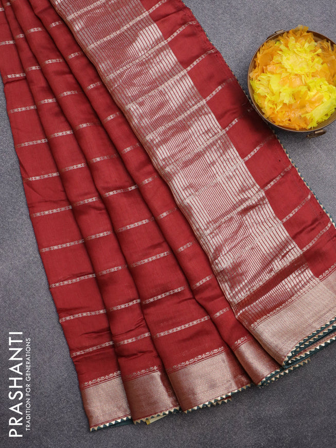 Semi chanderi saree rustic maroon with allover ...
