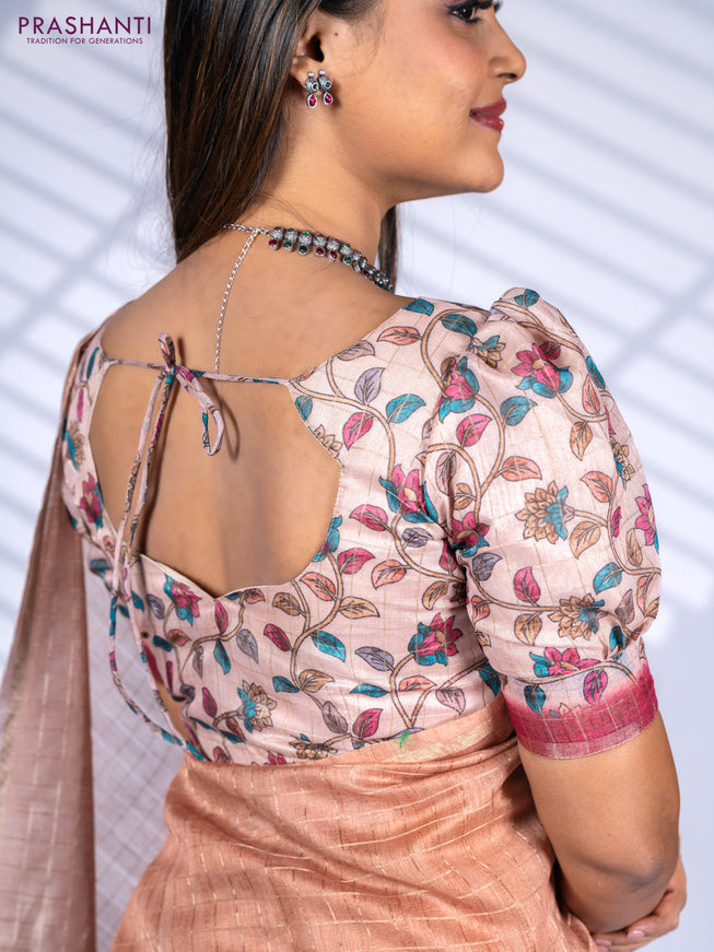 Semi chanderi saree pastel peach with allover ...