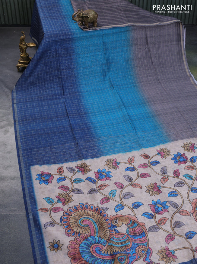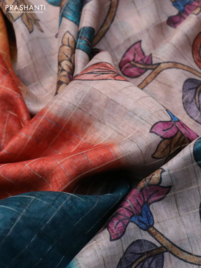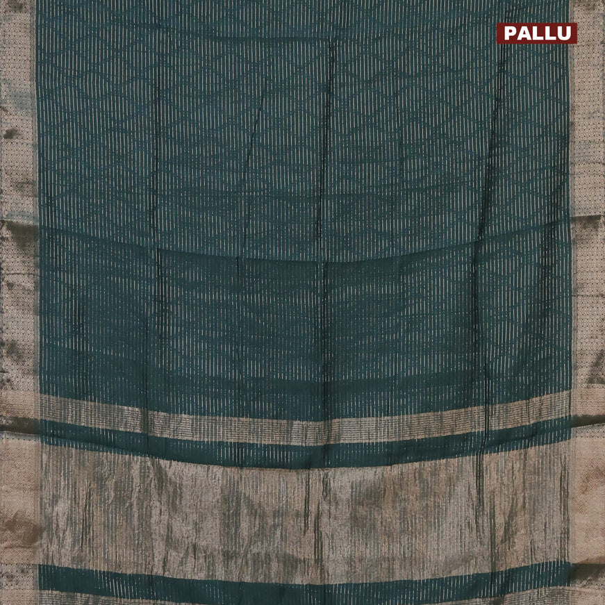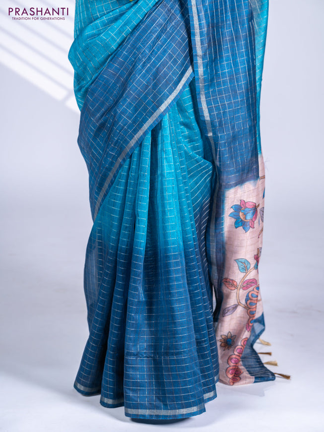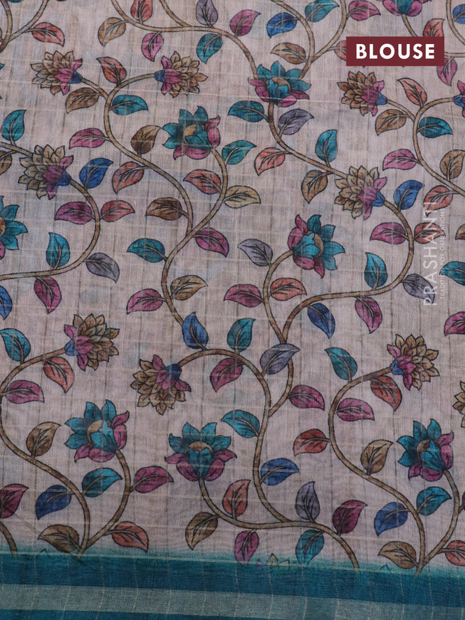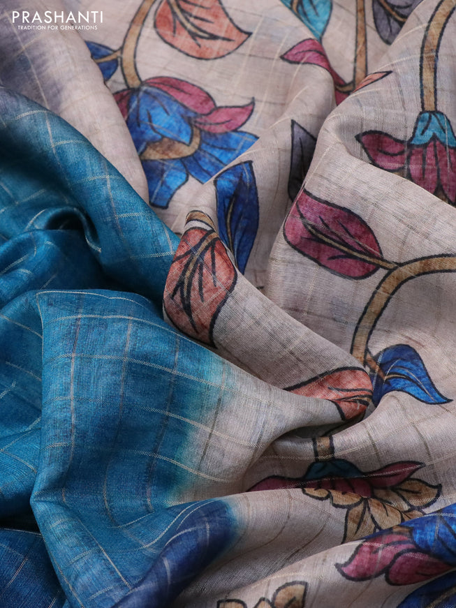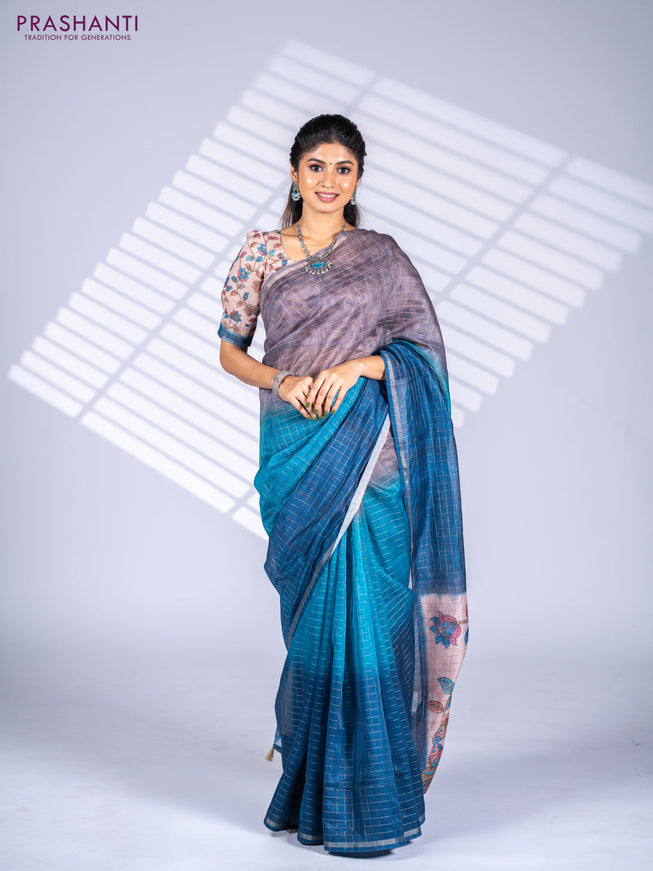 Semi chanderi saree beige and peacock blue with...