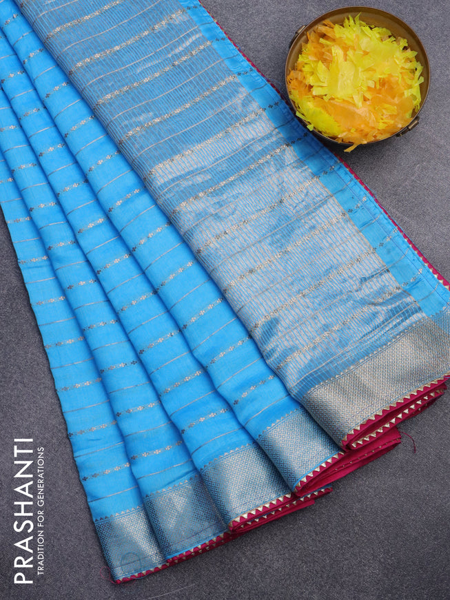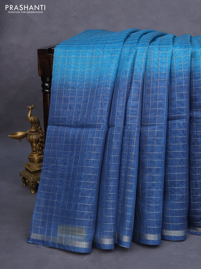 Semi chanderi saree indigo blue and blue with a...