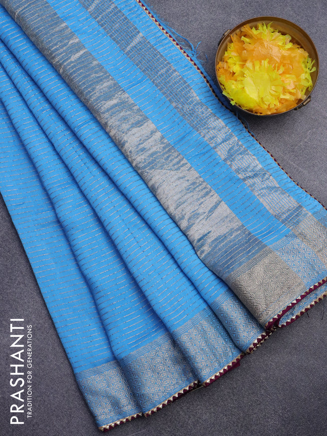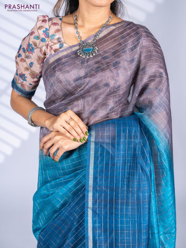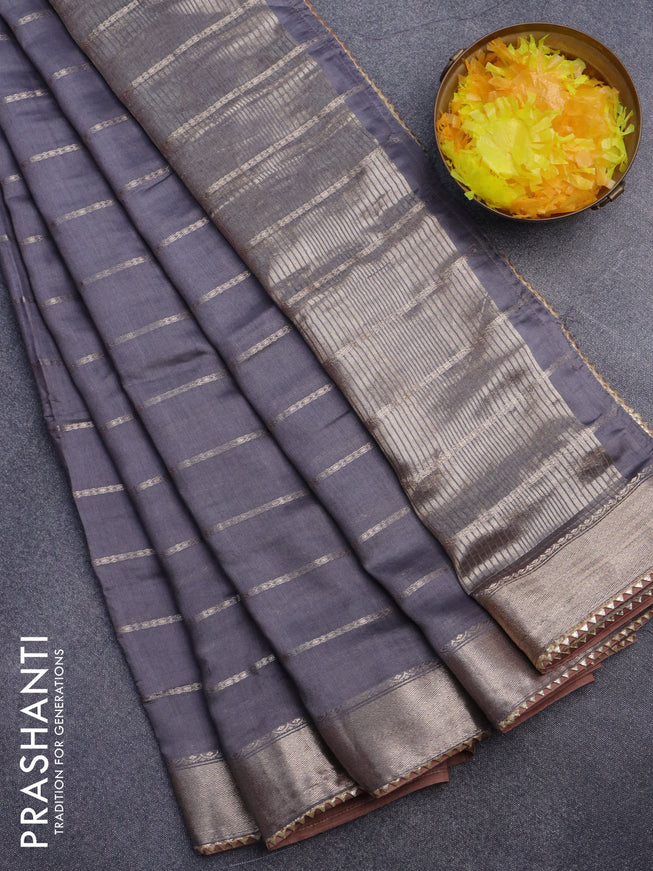 Semi chanderi saree greyish blue and grey with ...