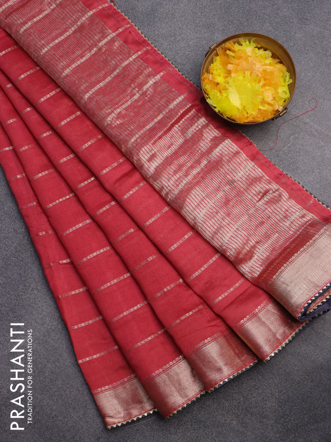 Semi chanderi saree red with allover zari weave...