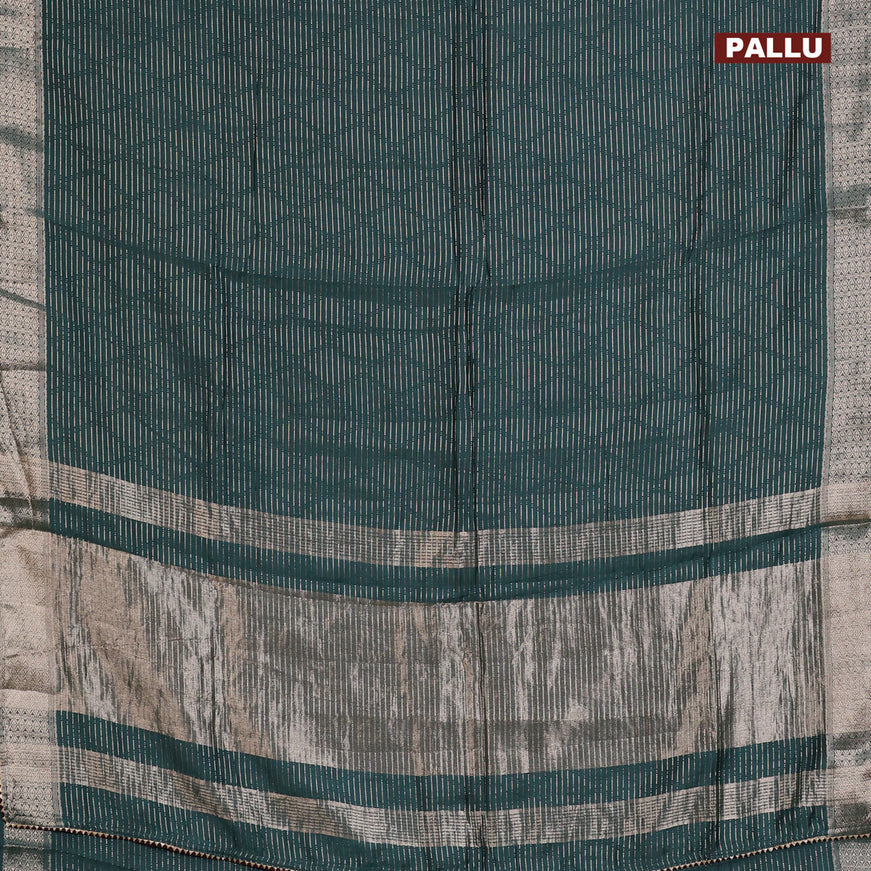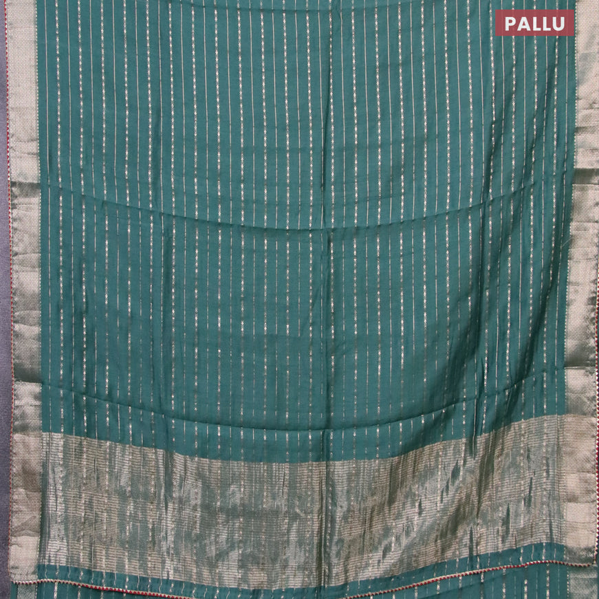 Semi chanderi saree pista green shade and teal ...