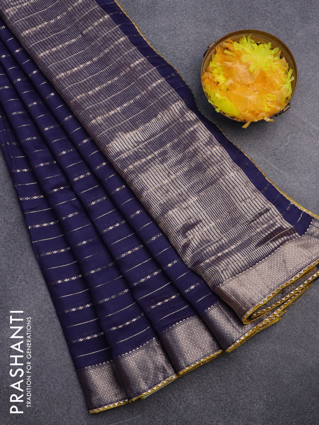 Semi chanderi saree indigo blue with allover aj...