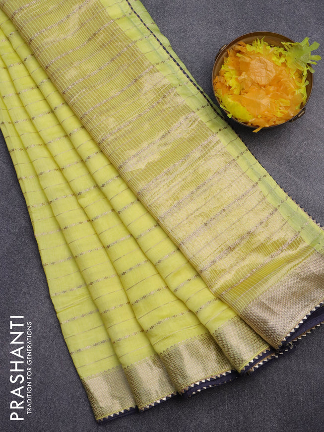 Semi chanderi saree lime green and green with a...