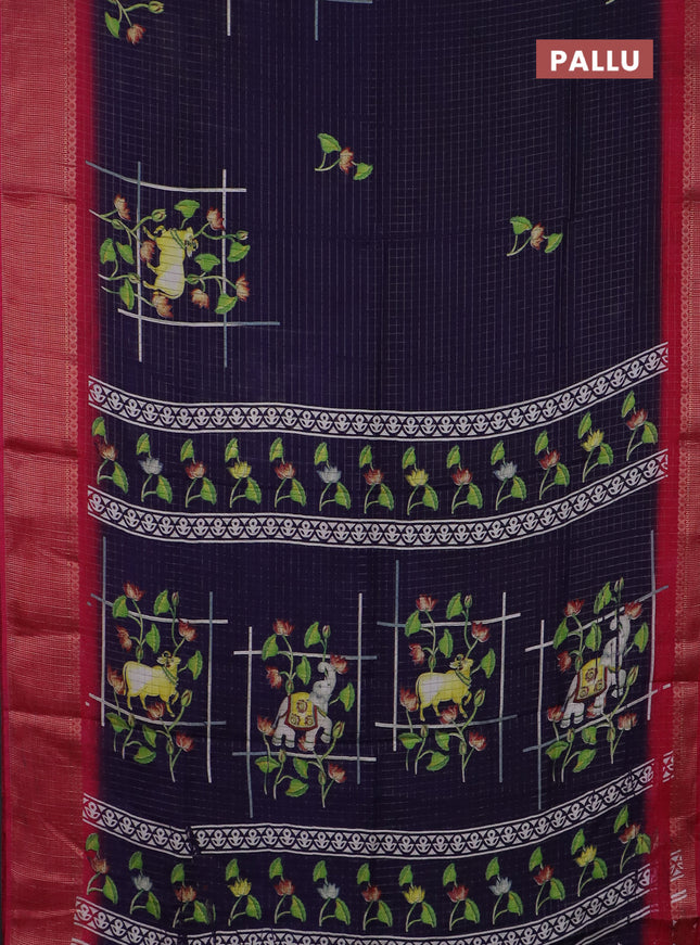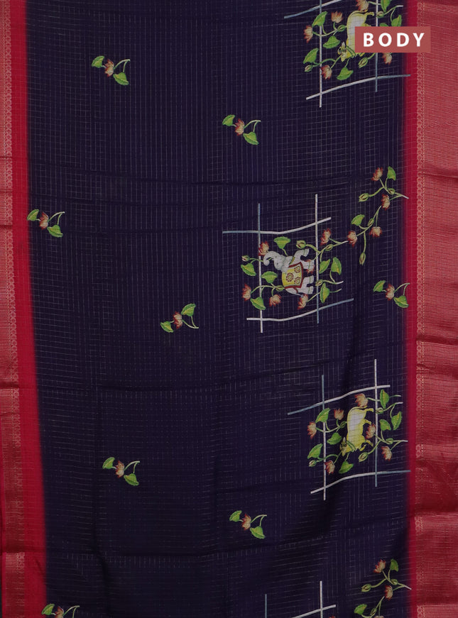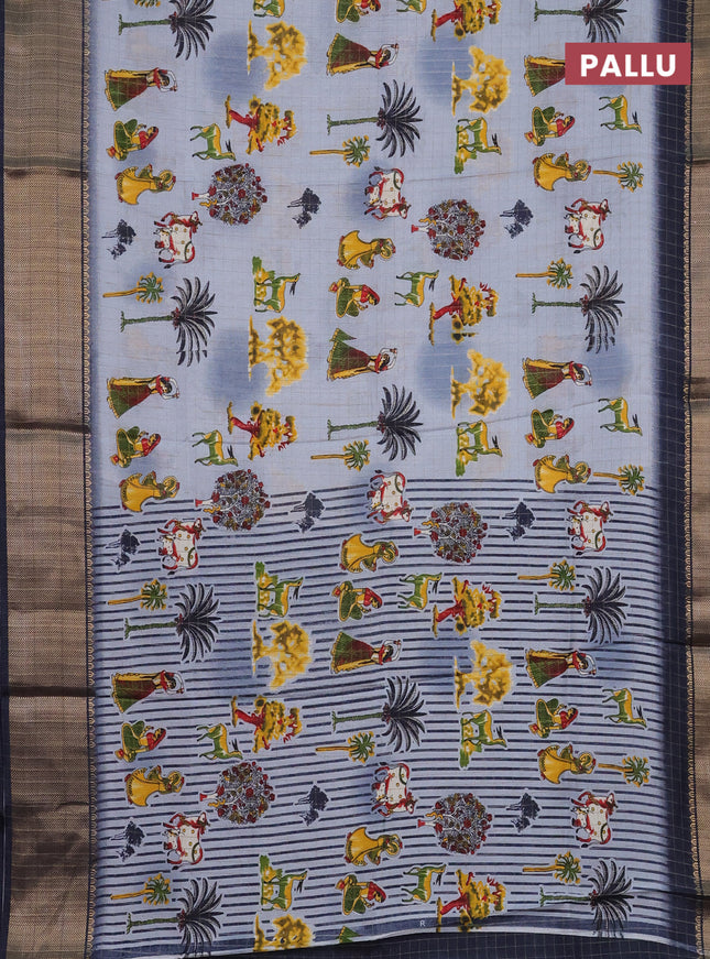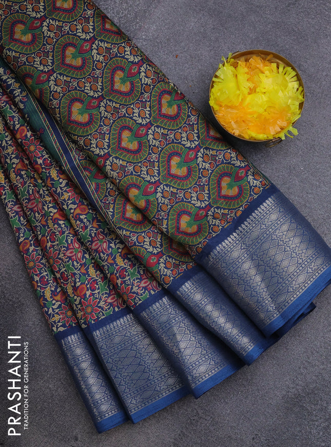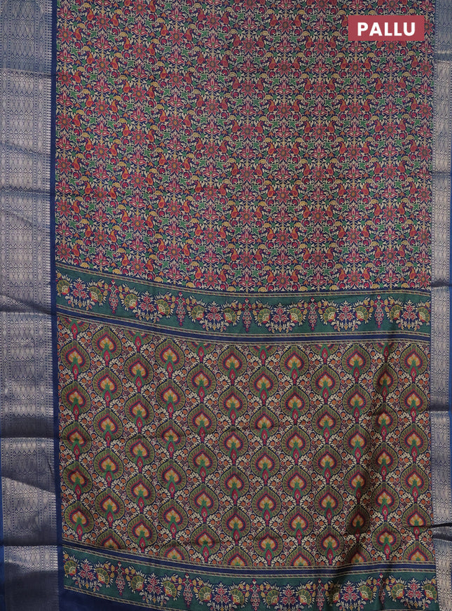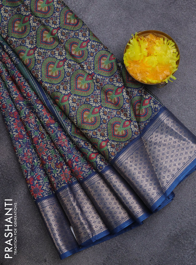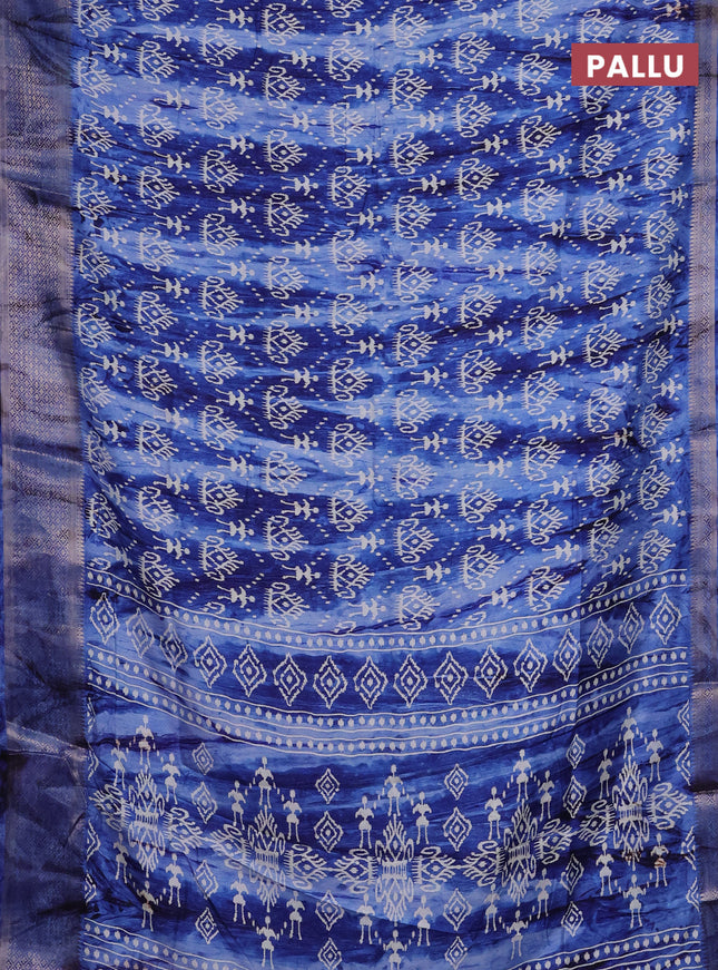 Semi dola saree navy blue with allover ikat but...