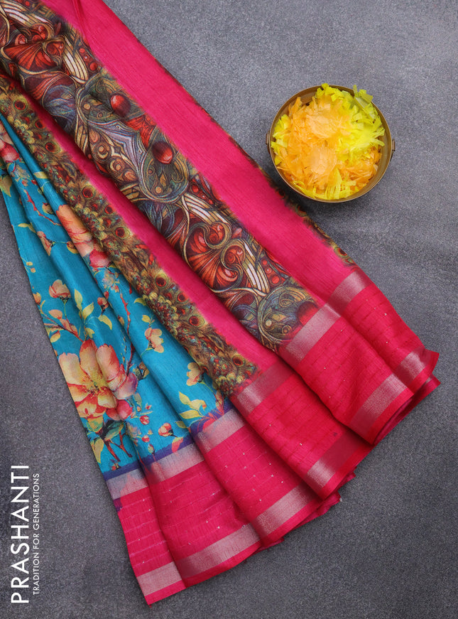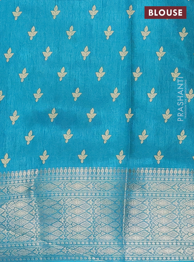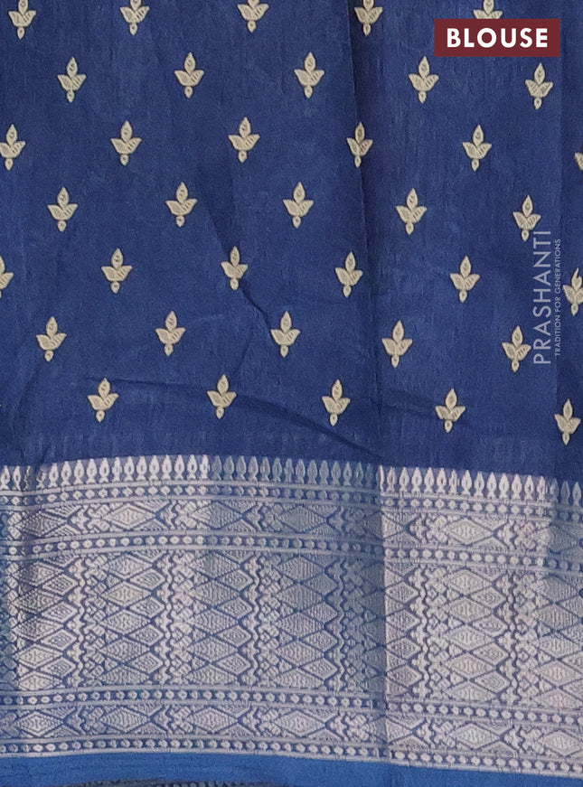 Semi dola saree blue shade with butta prints an...