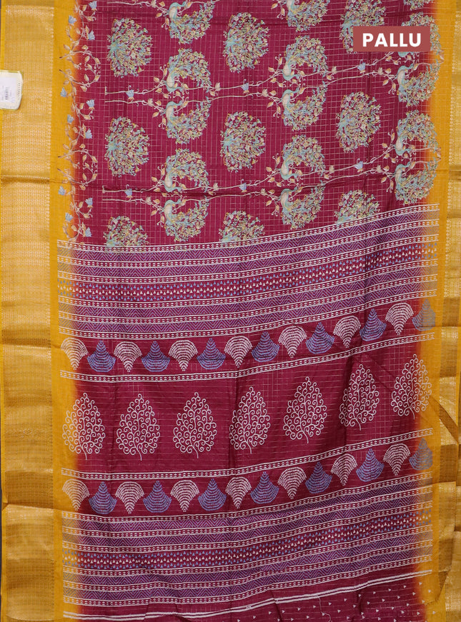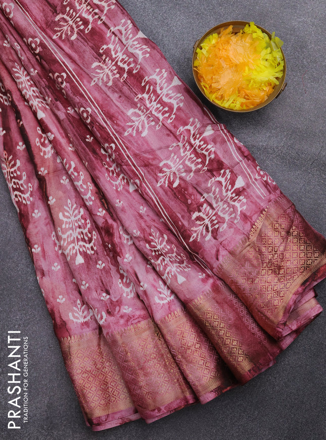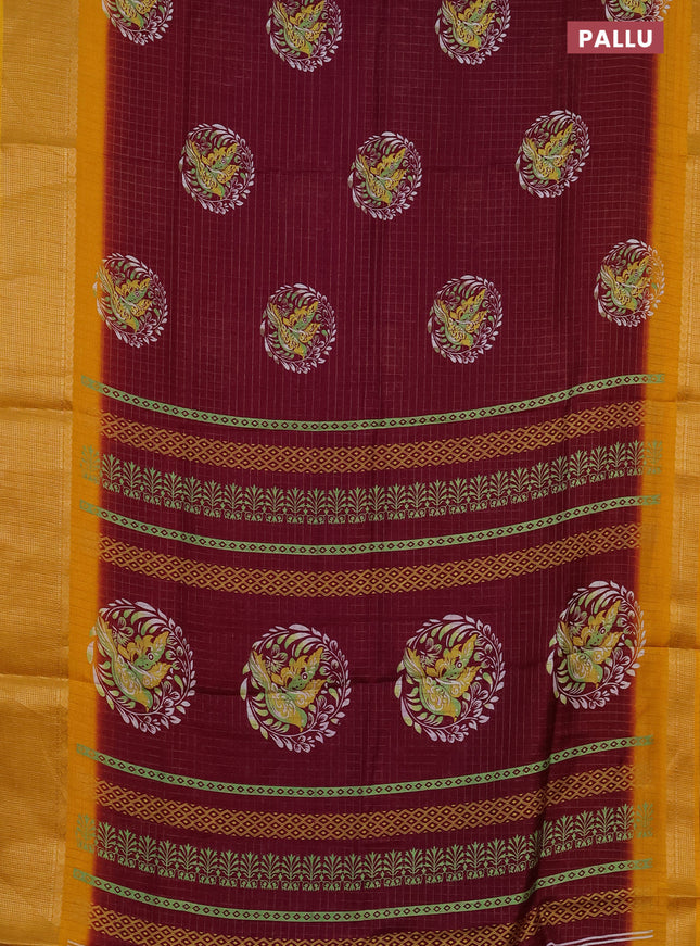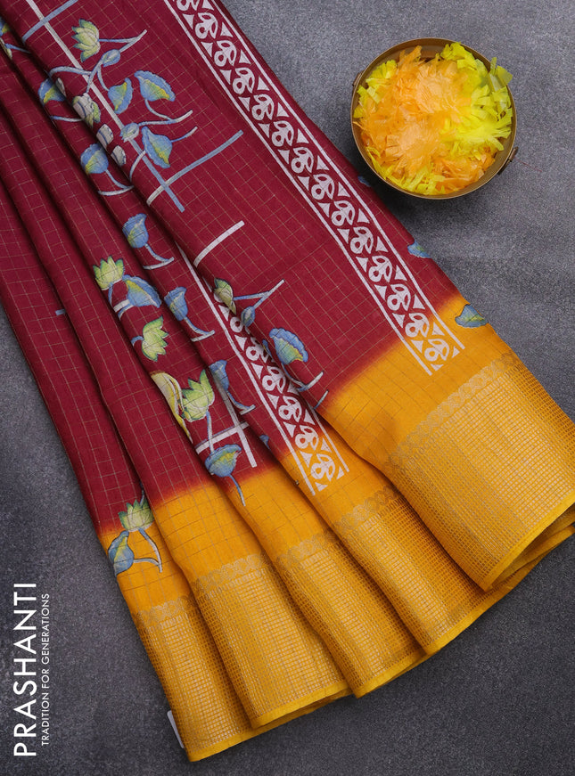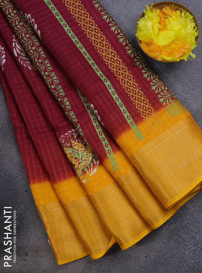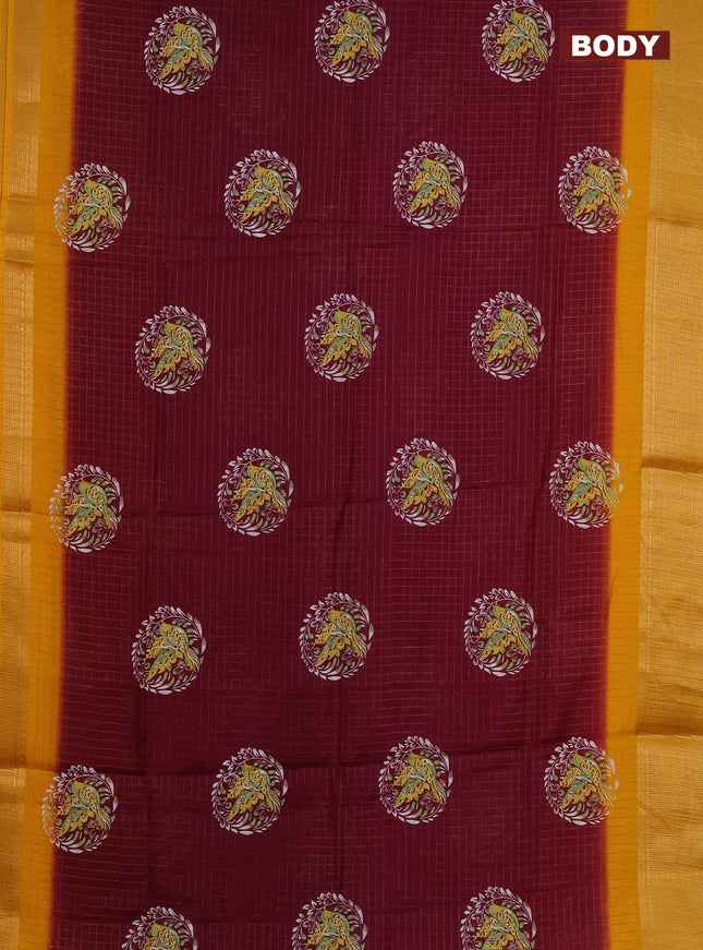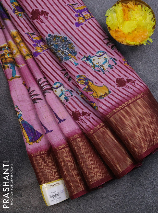 Semi dola saree maroon with allover prints and ...