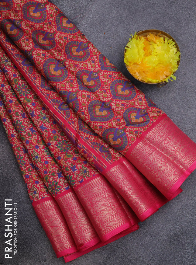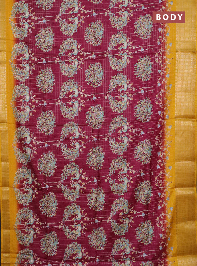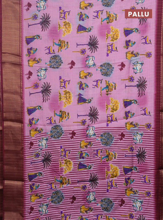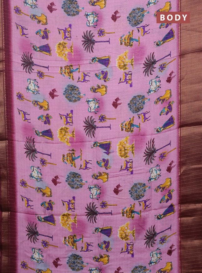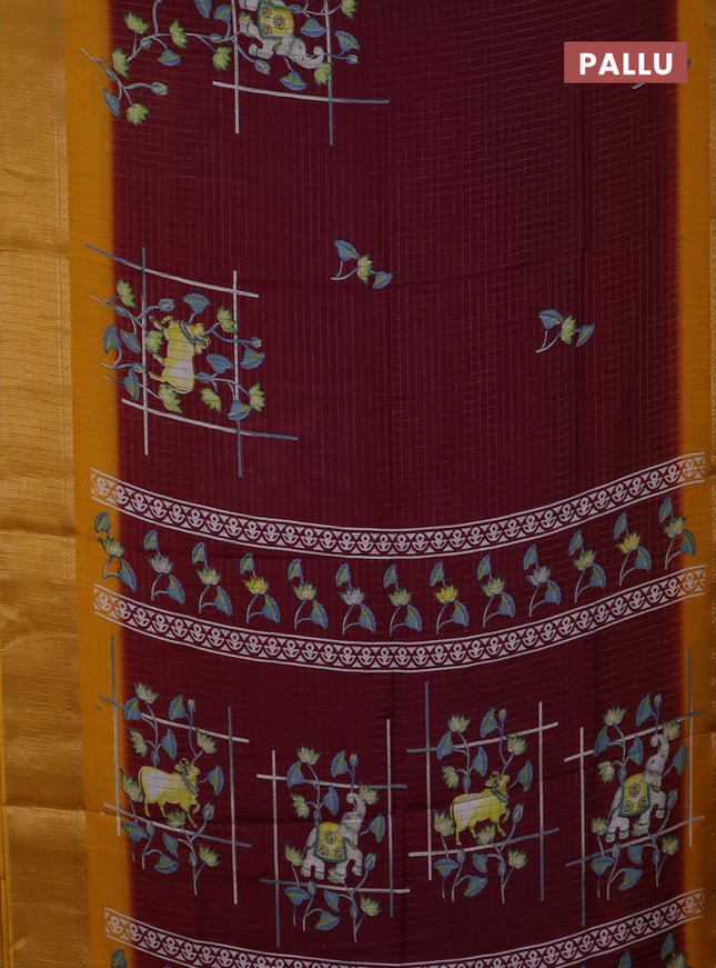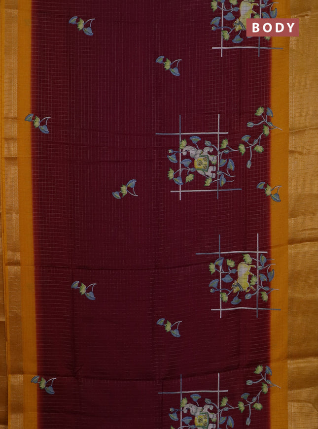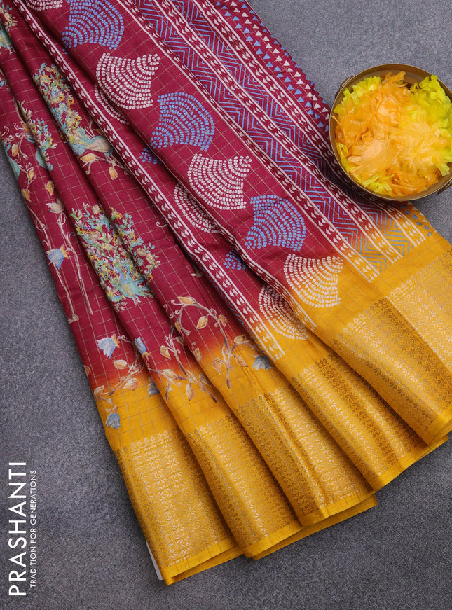 Semi dola saree maroon with allover prints and ...