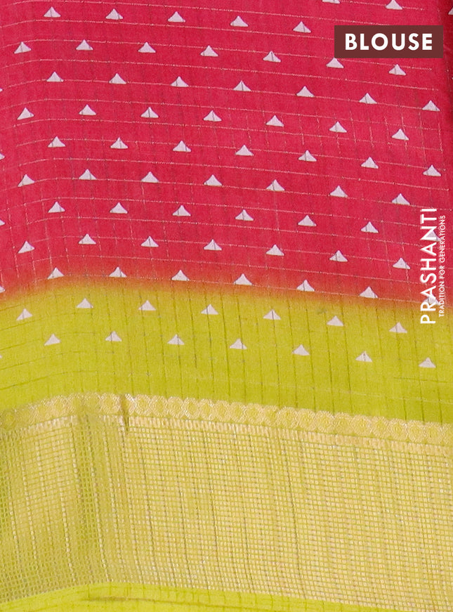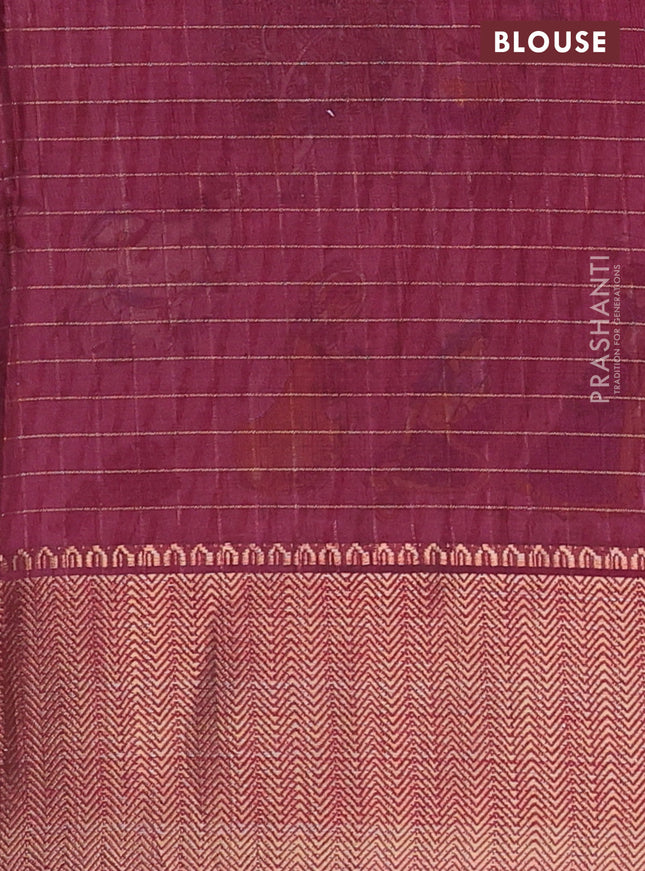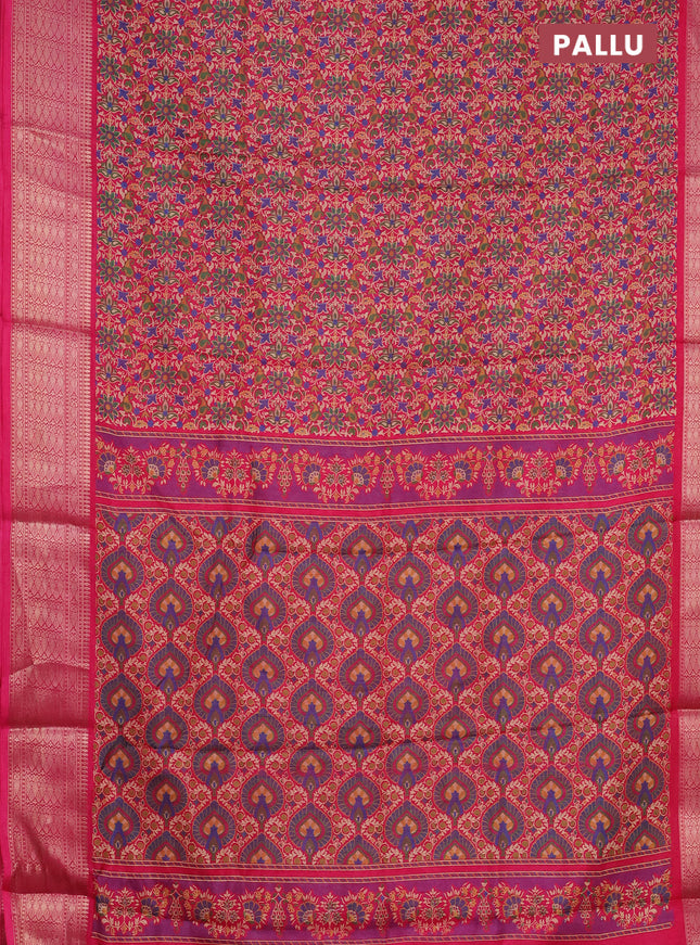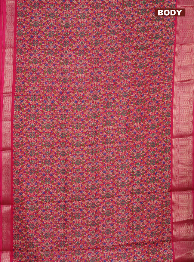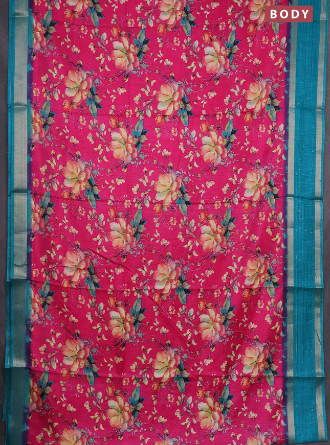 Semi dola saree dark magenta pink and green wit...