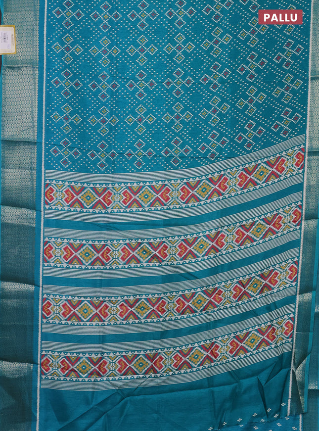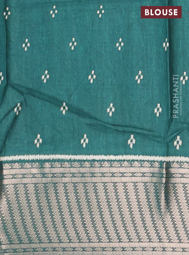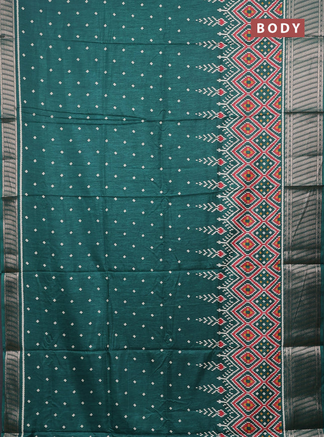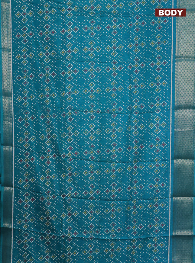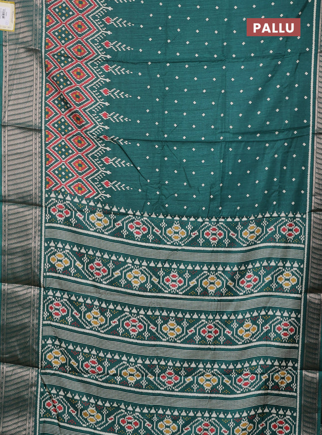 Semi dola saree teal green with allover ikat bu...