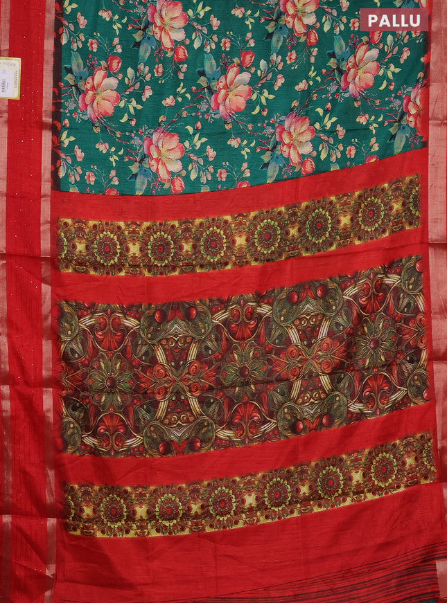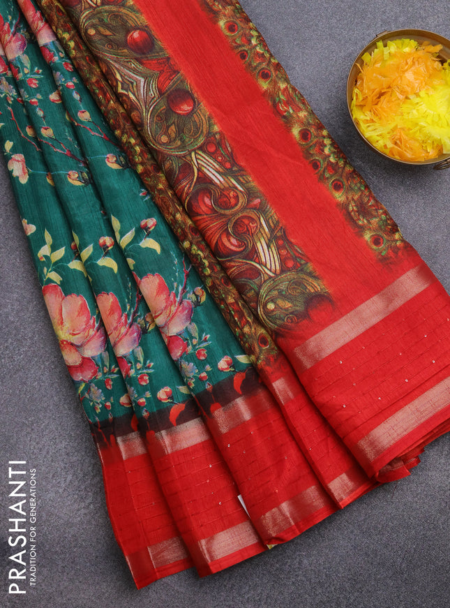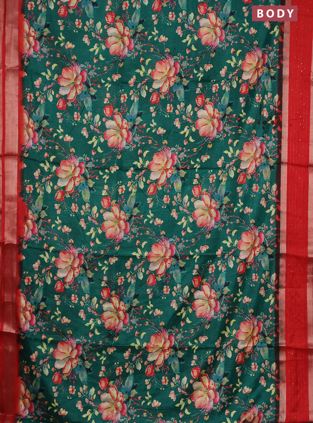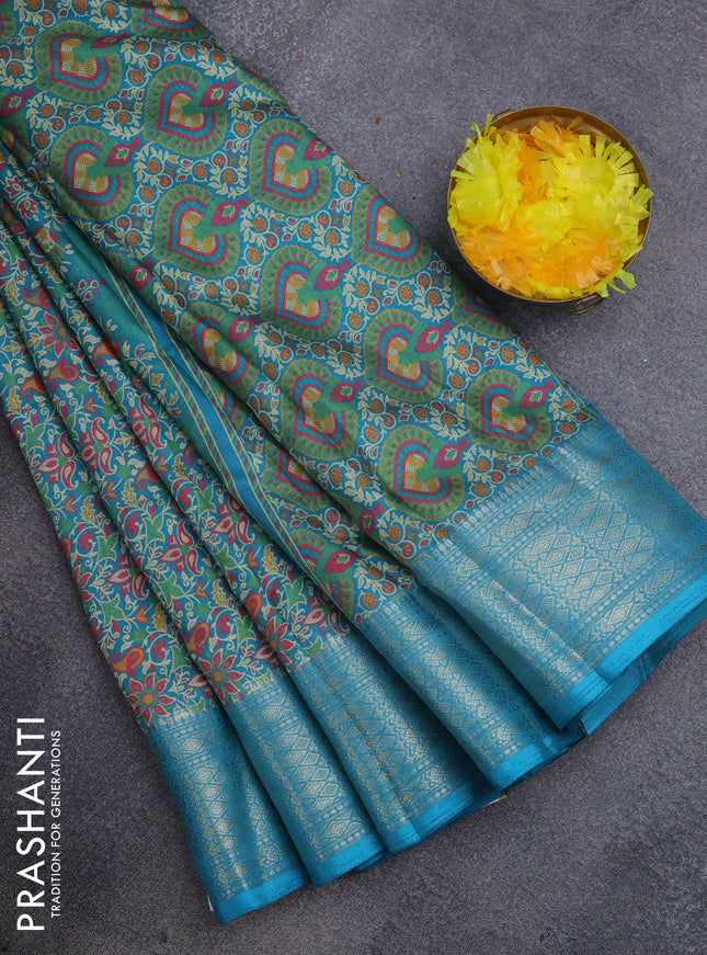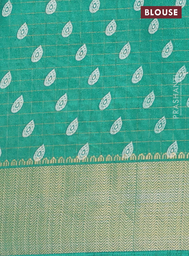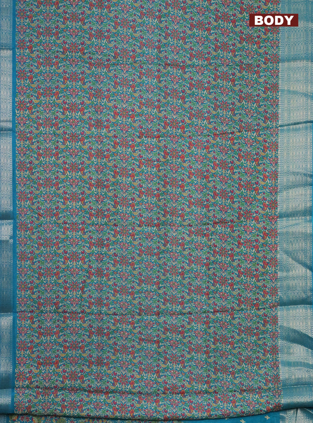 Semi dola saree teal green with allover ikat bu...