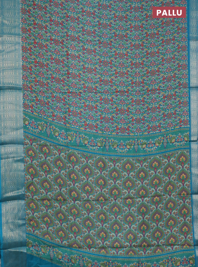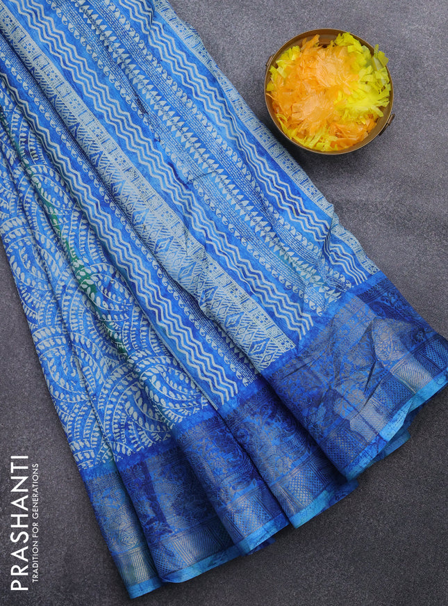 Semi dola saree teal blue and blue with allover...