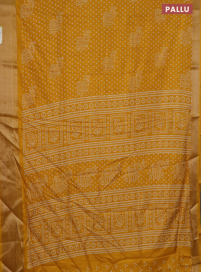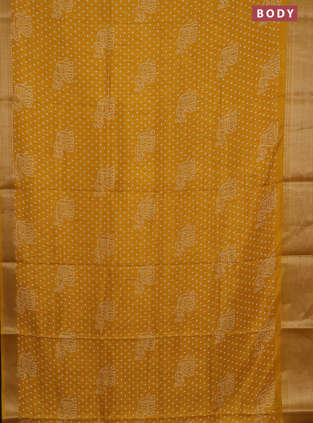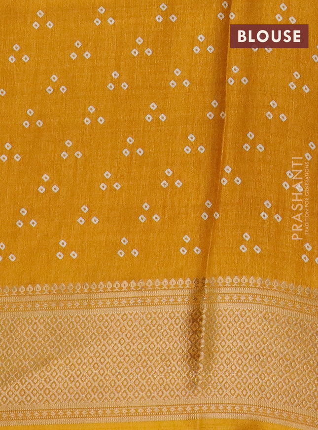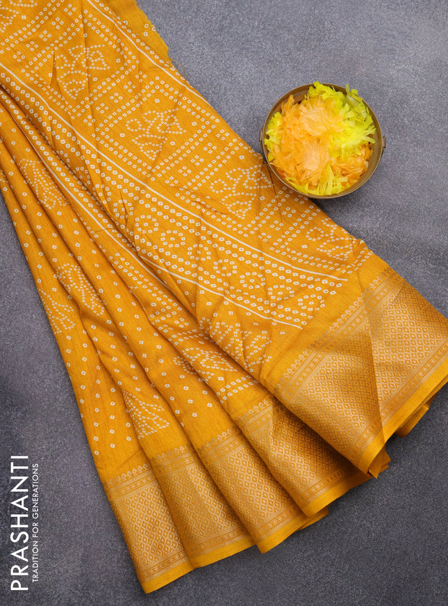 Semi dola saree yellow with allover bandhani pr...
