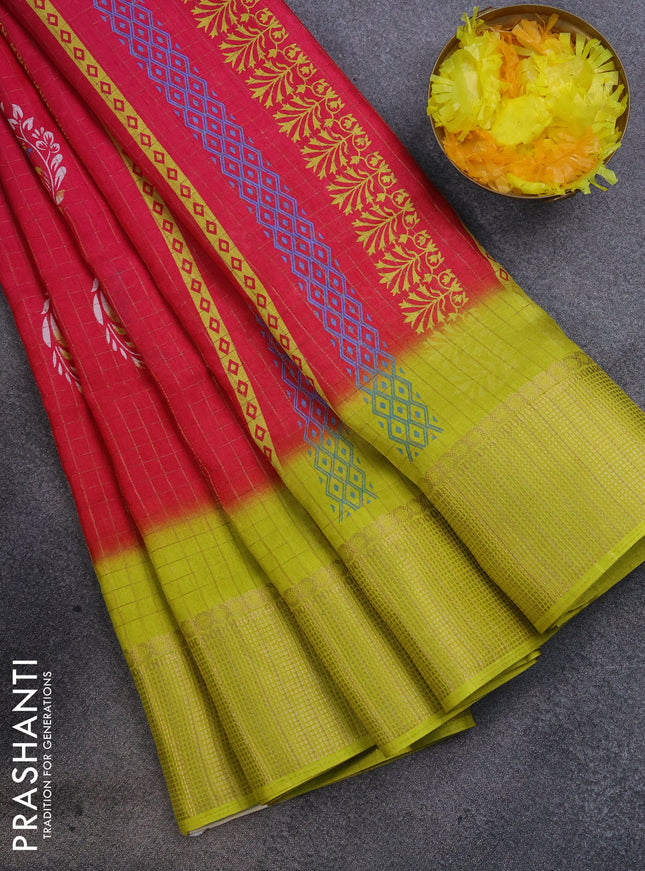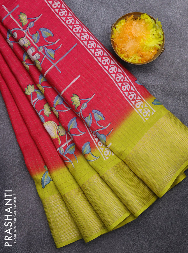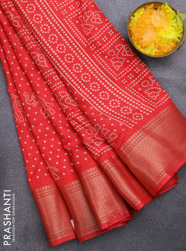 Semi dola saree red with butta prints and zari ...