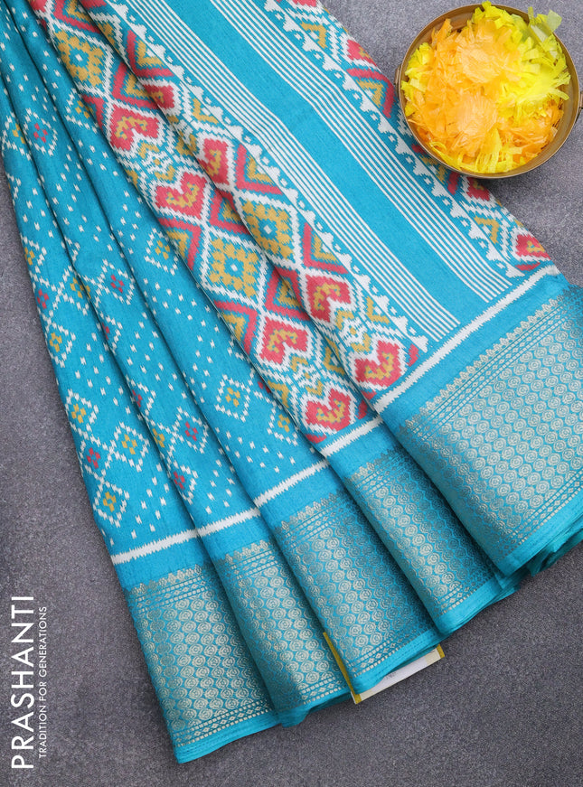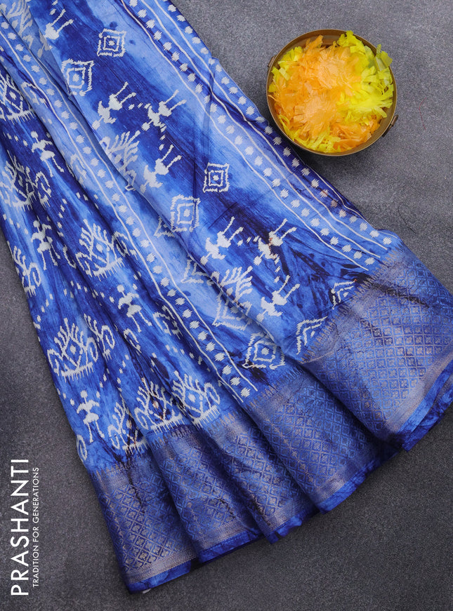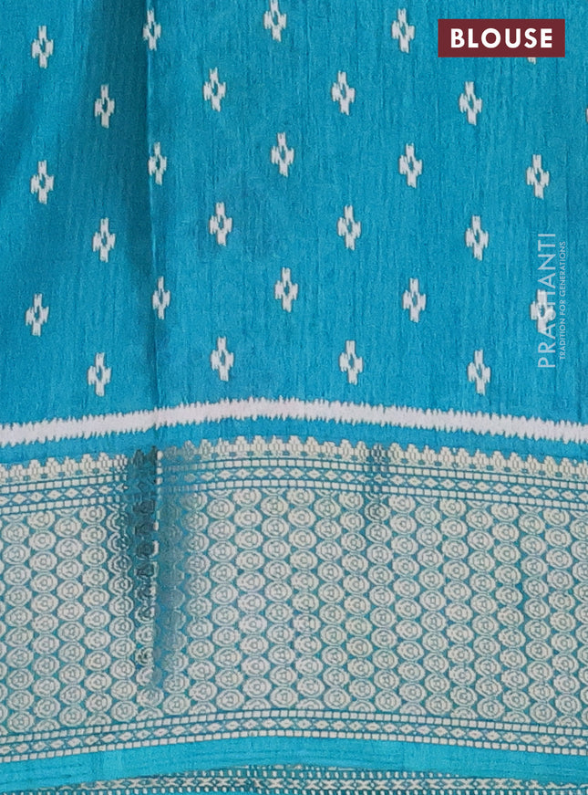 Semi dola saree peacock blue with allover ikat ...