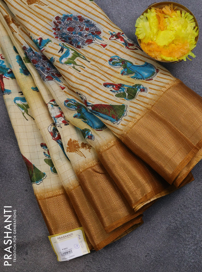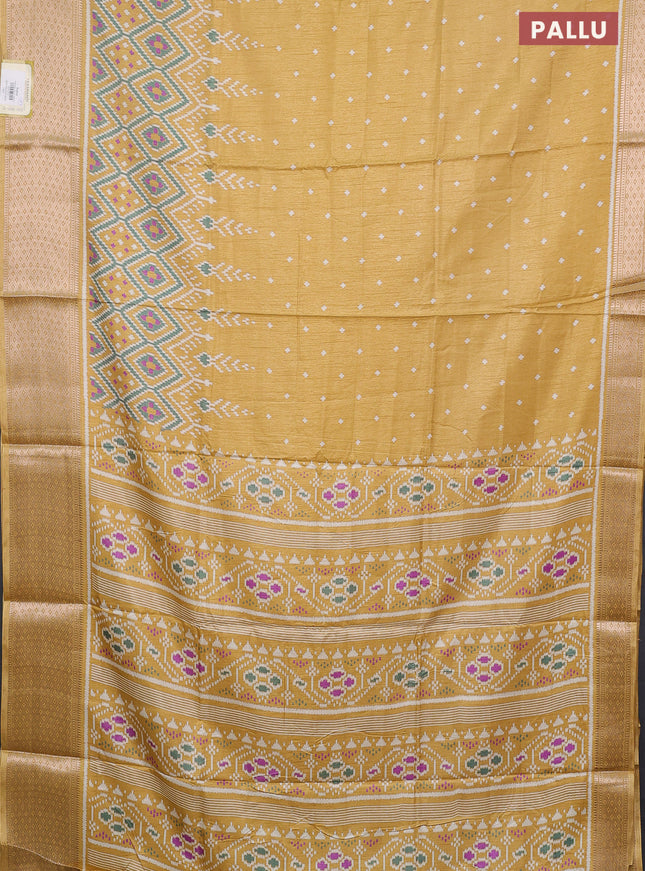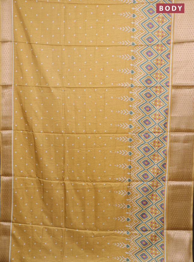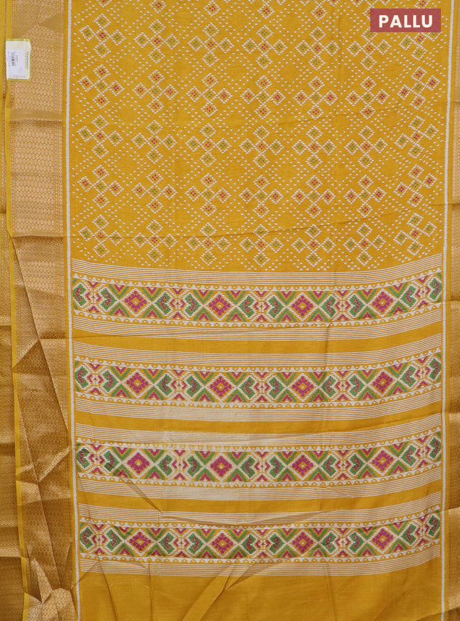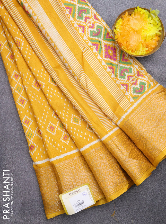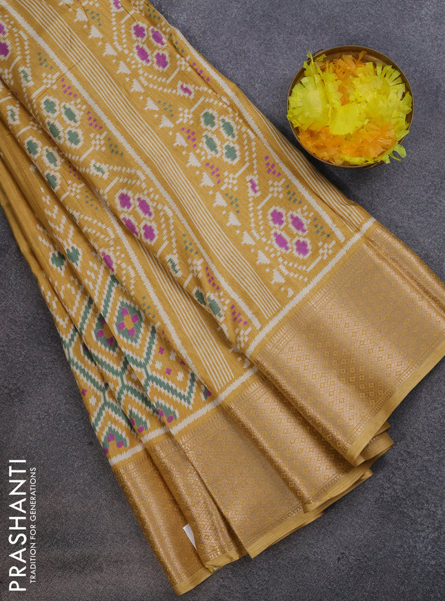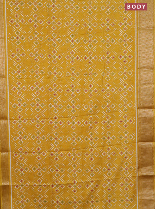 Semi dola saree mustard yellow with allover ika...