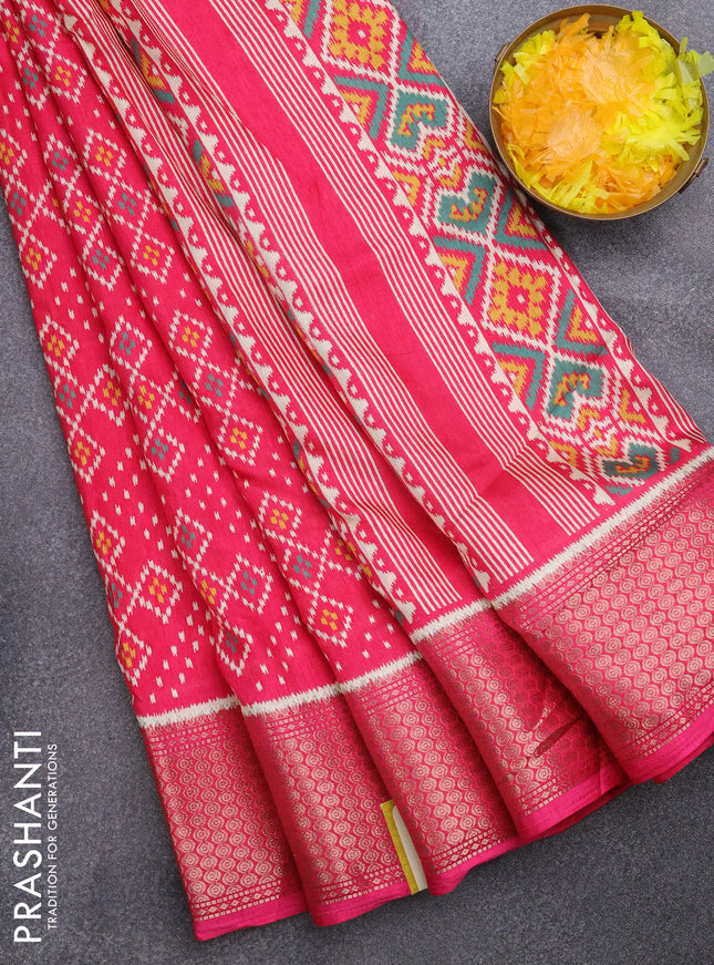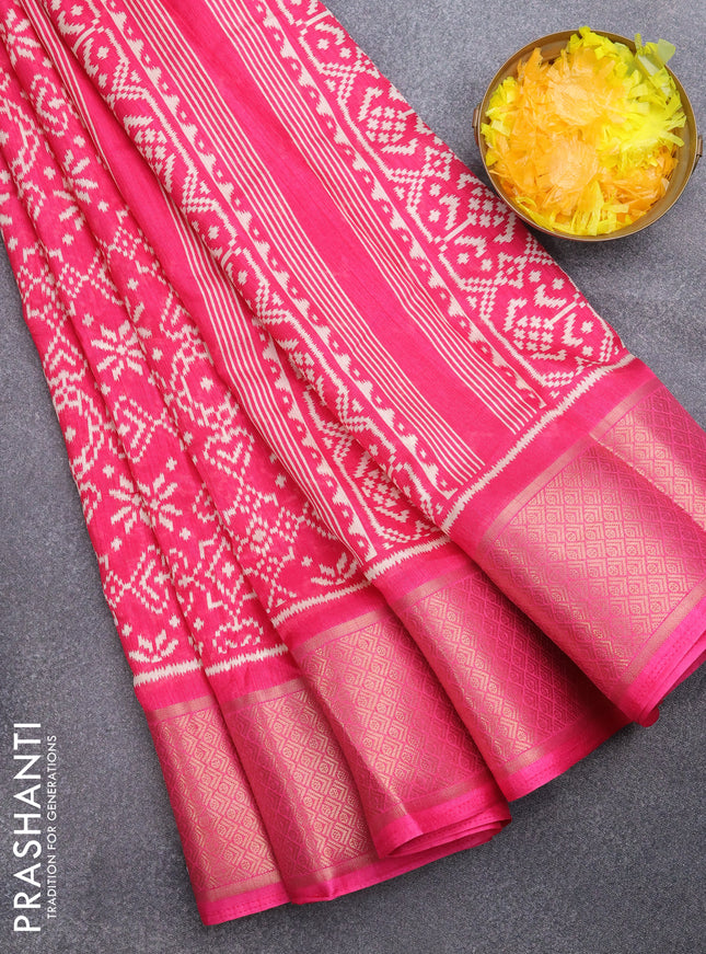 Semi dola saree pink with allover ikat prints a...