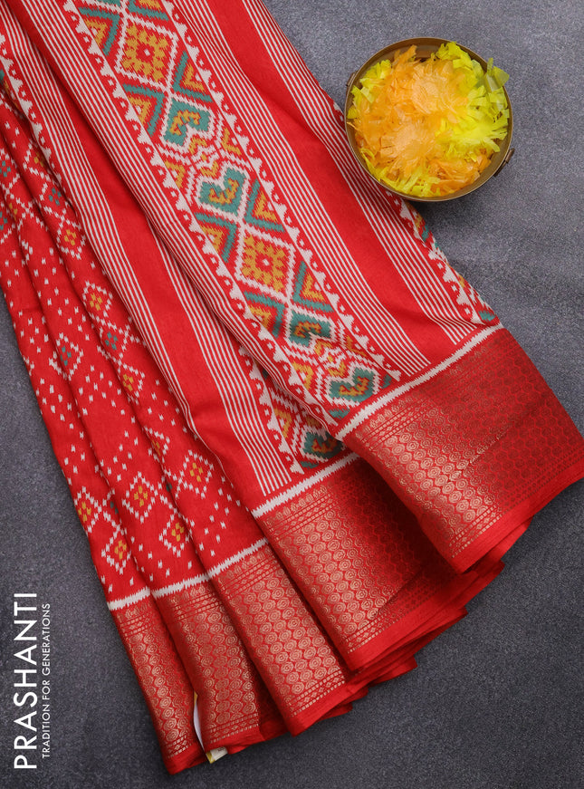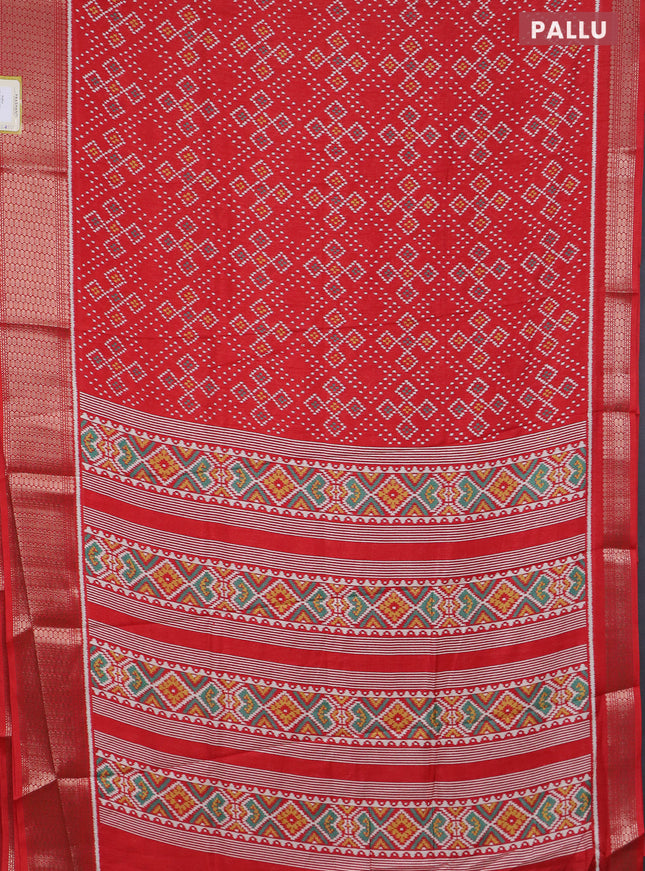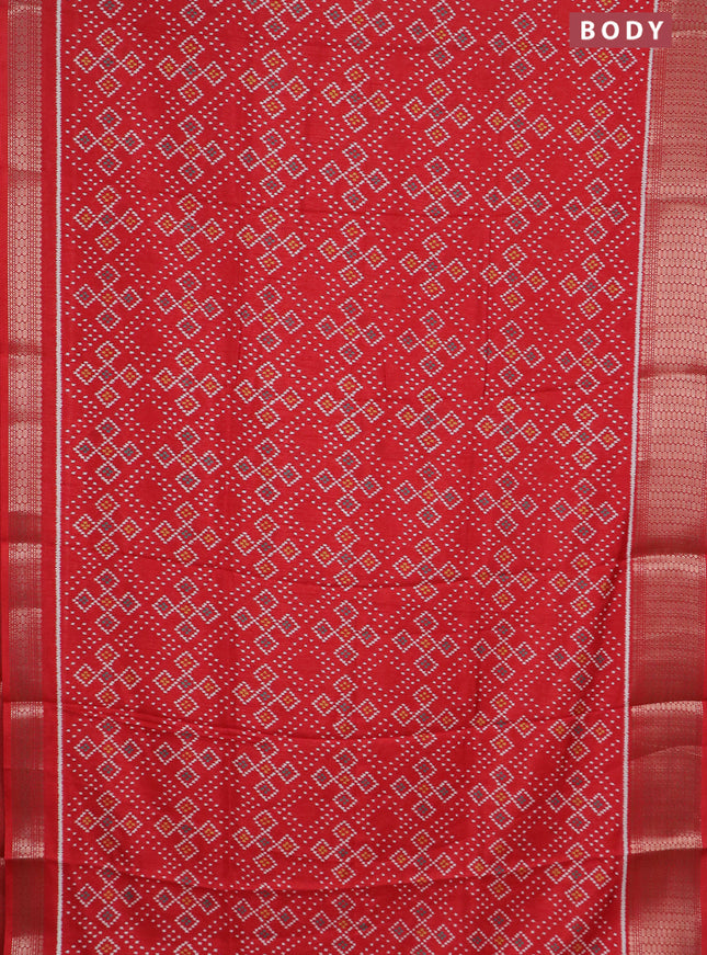 Semi dola saree red with allover ikat butta pri...