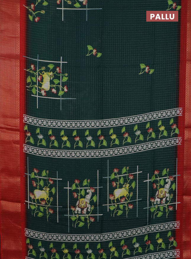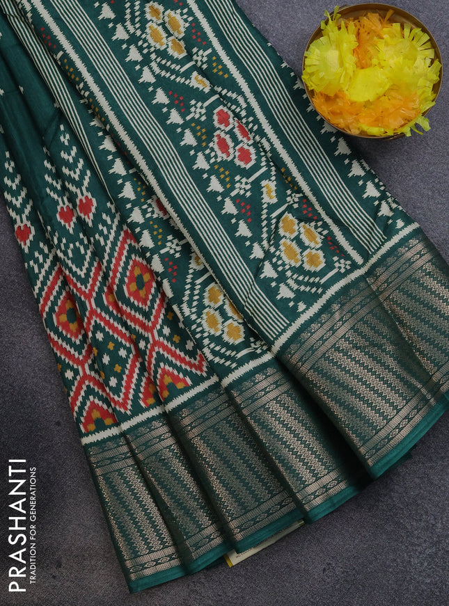 Semi dola saree bottle green with allover ikat ...