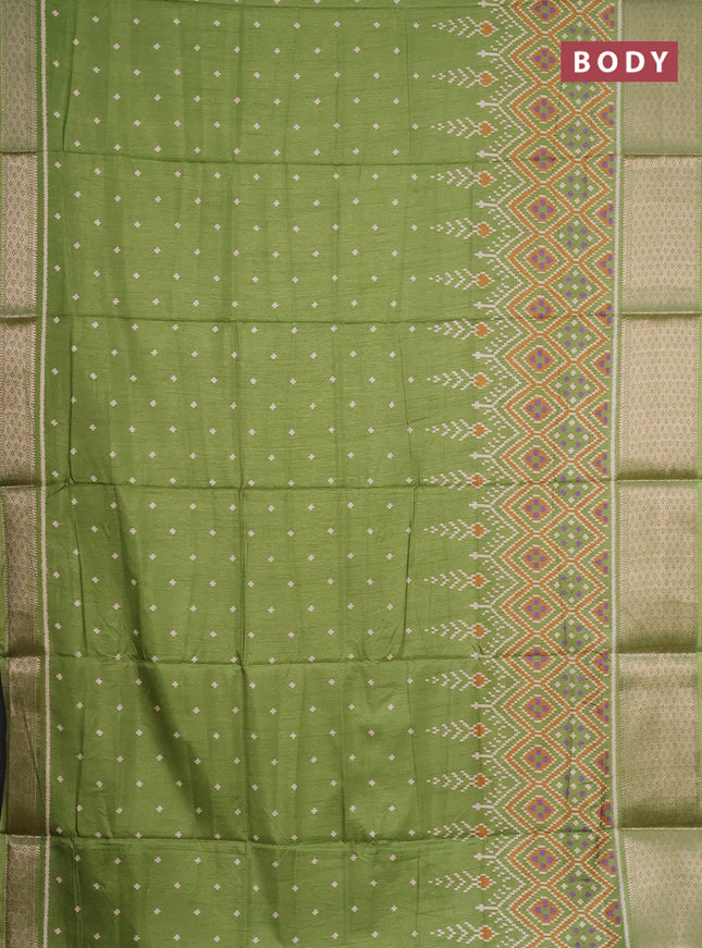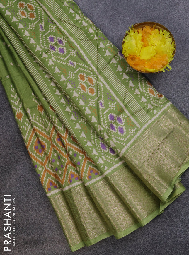 Semi dola saree green with allover ikat prints ...