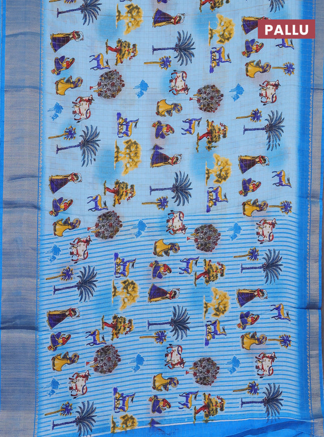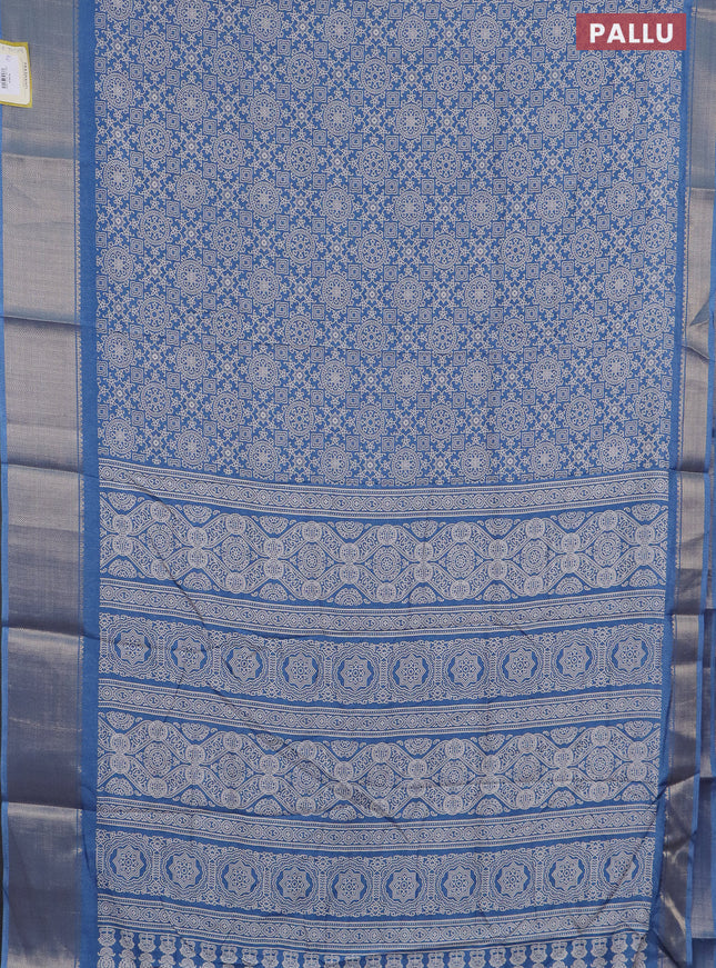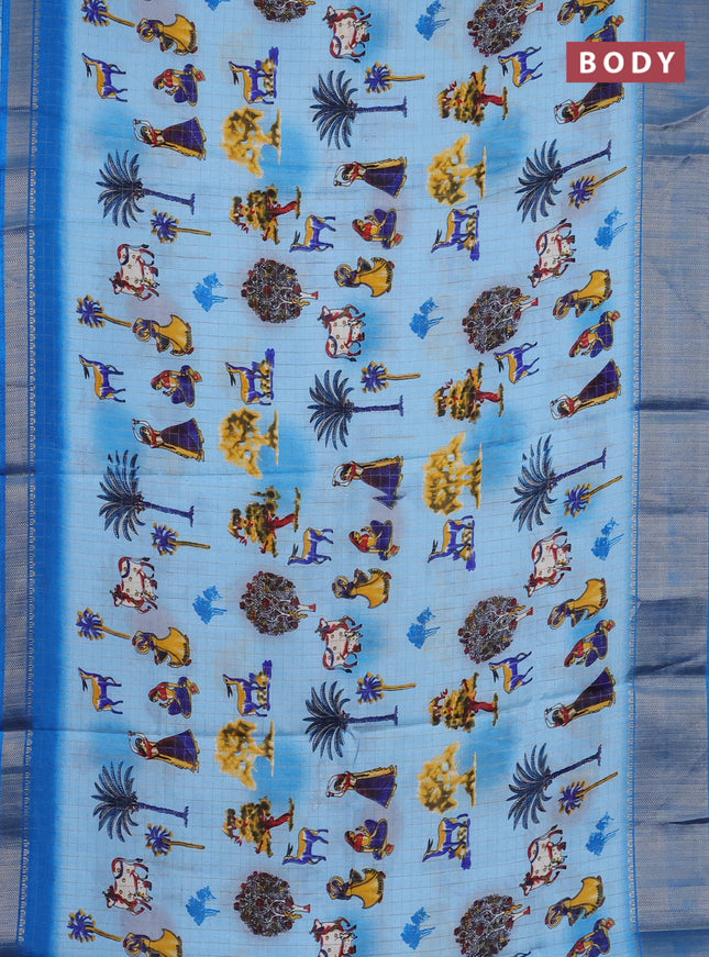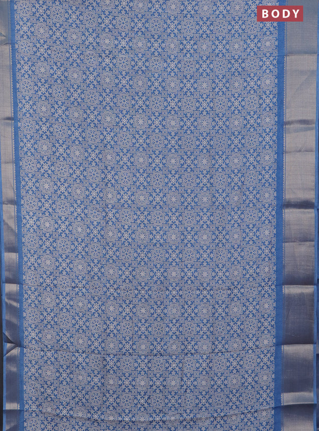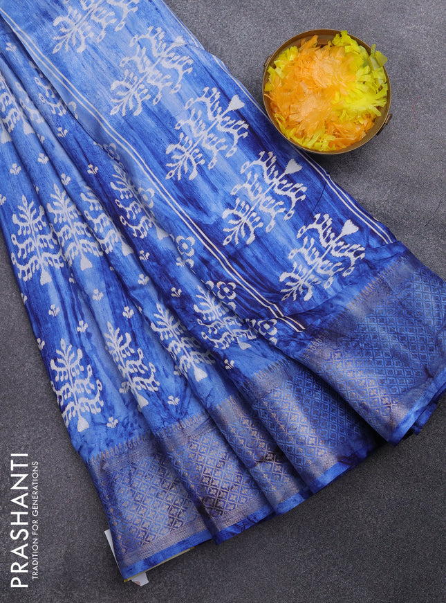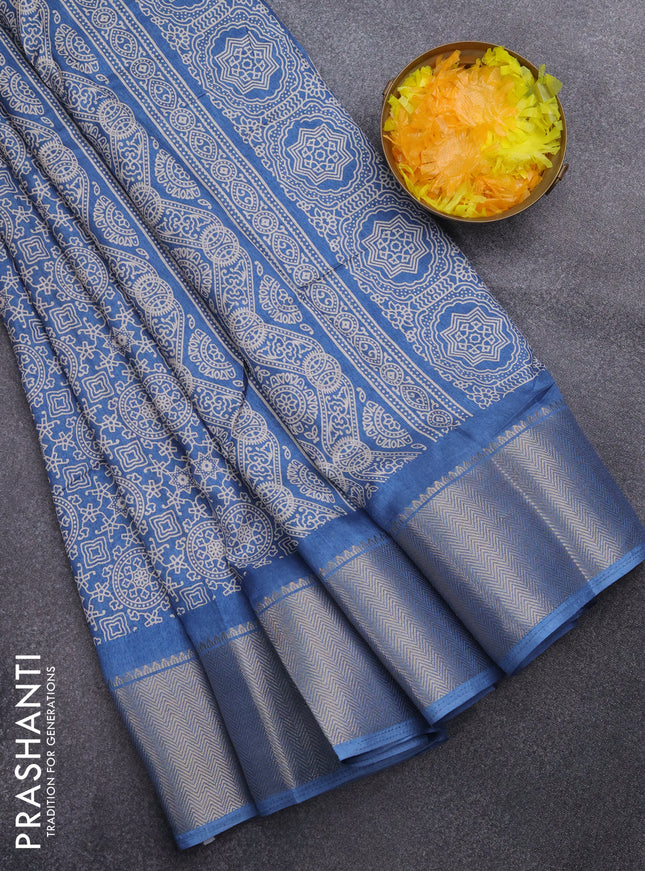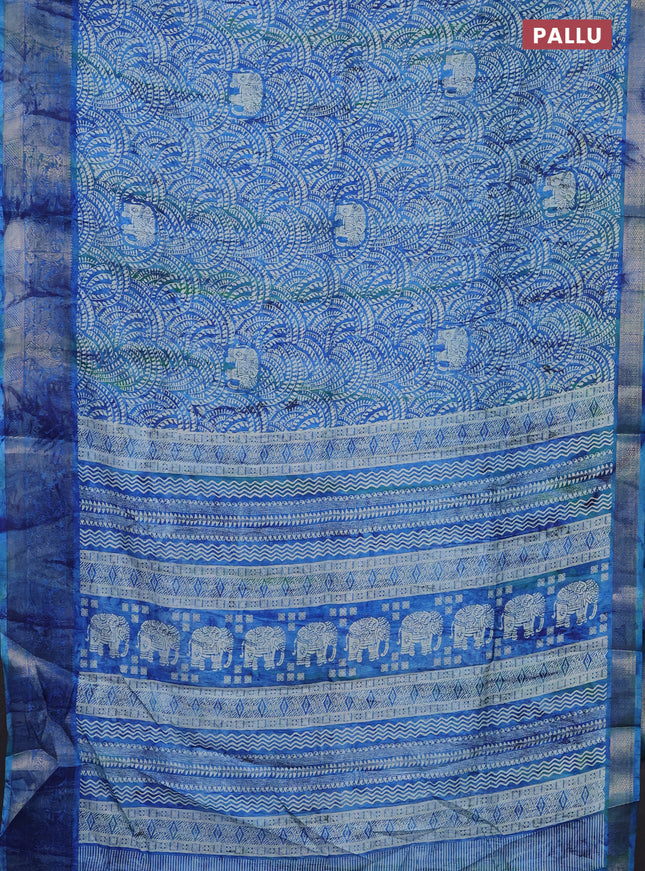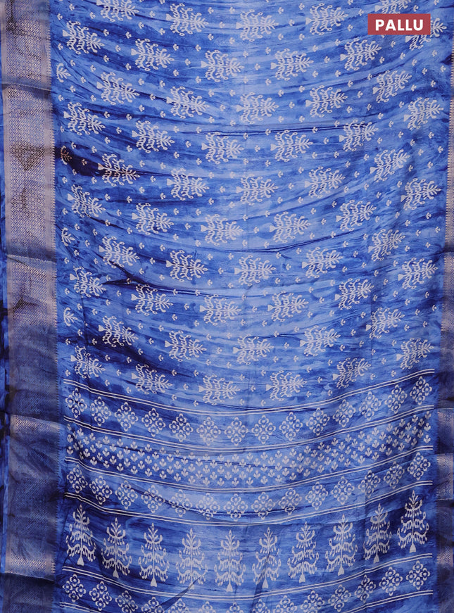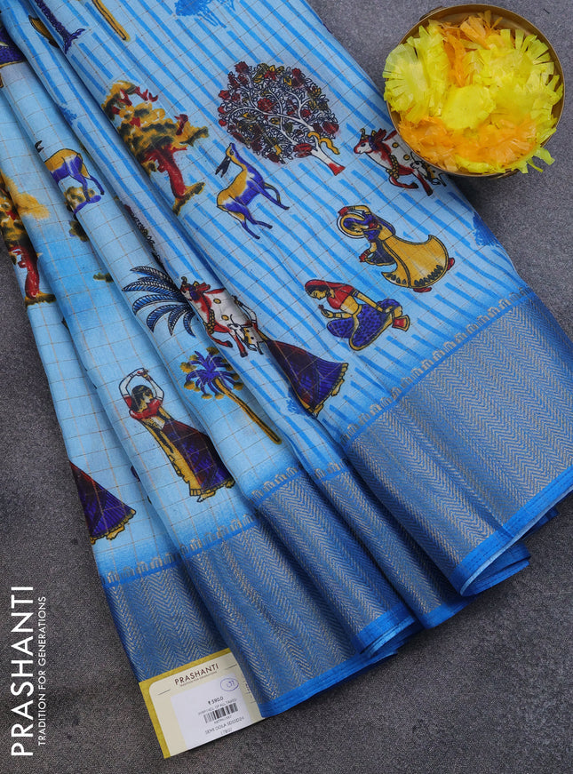 Semi dola saree blue shade with allover prints ...