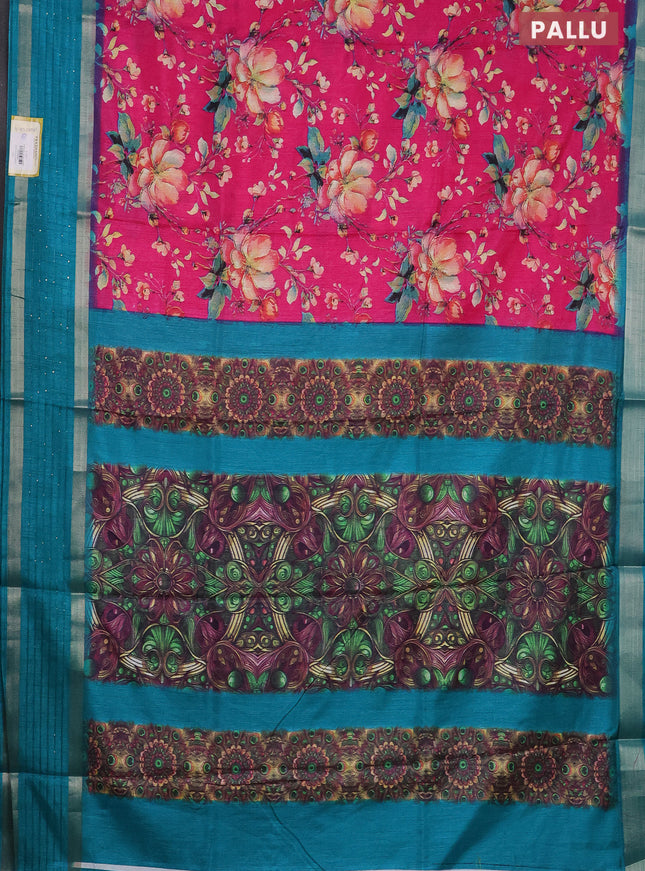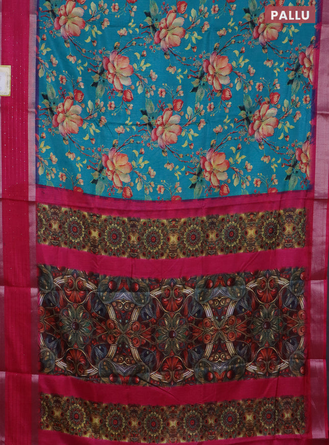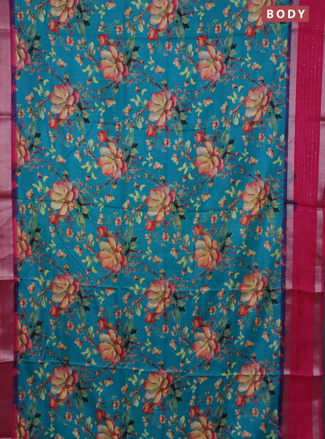 Semi dola saree teal blue shade and dark magent...