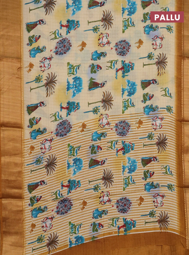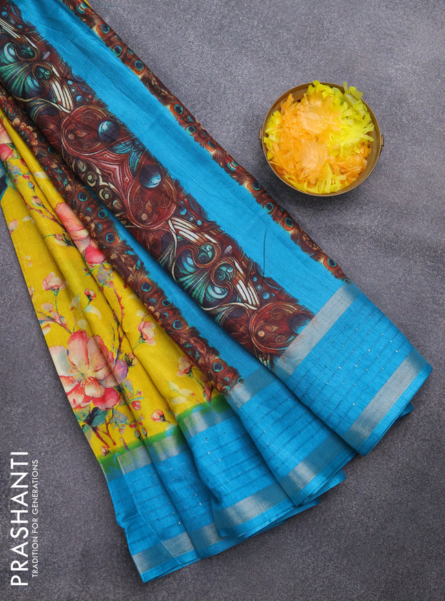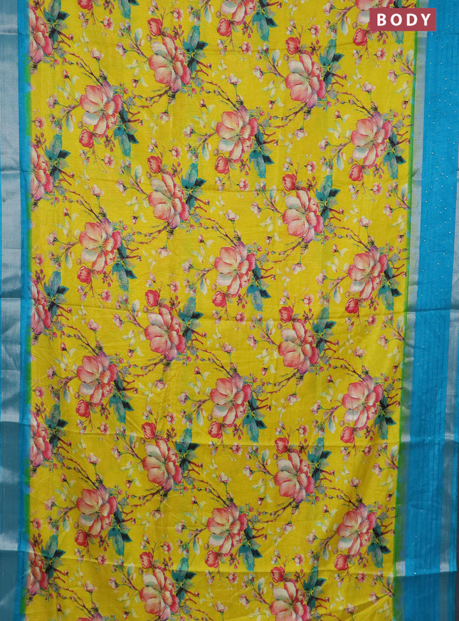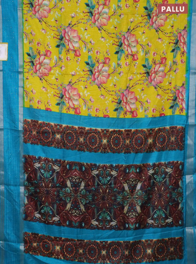 Semi dola saree yellow and teal blue with allov...