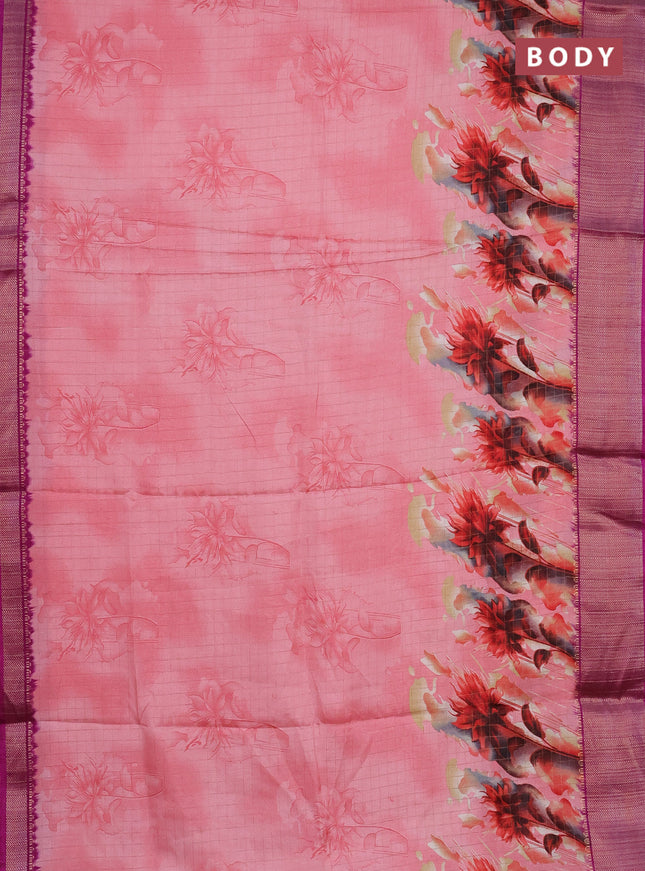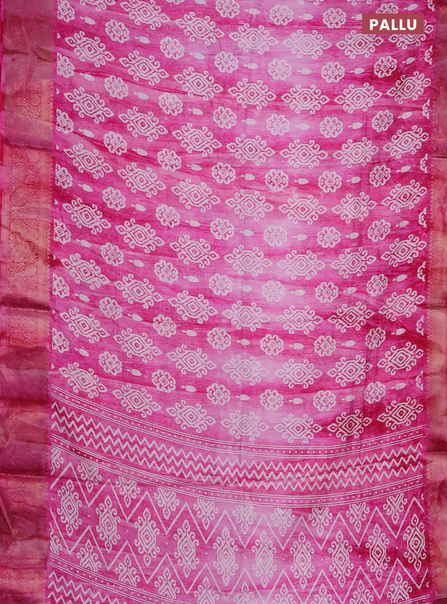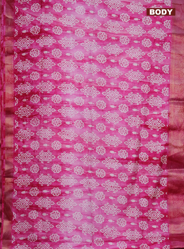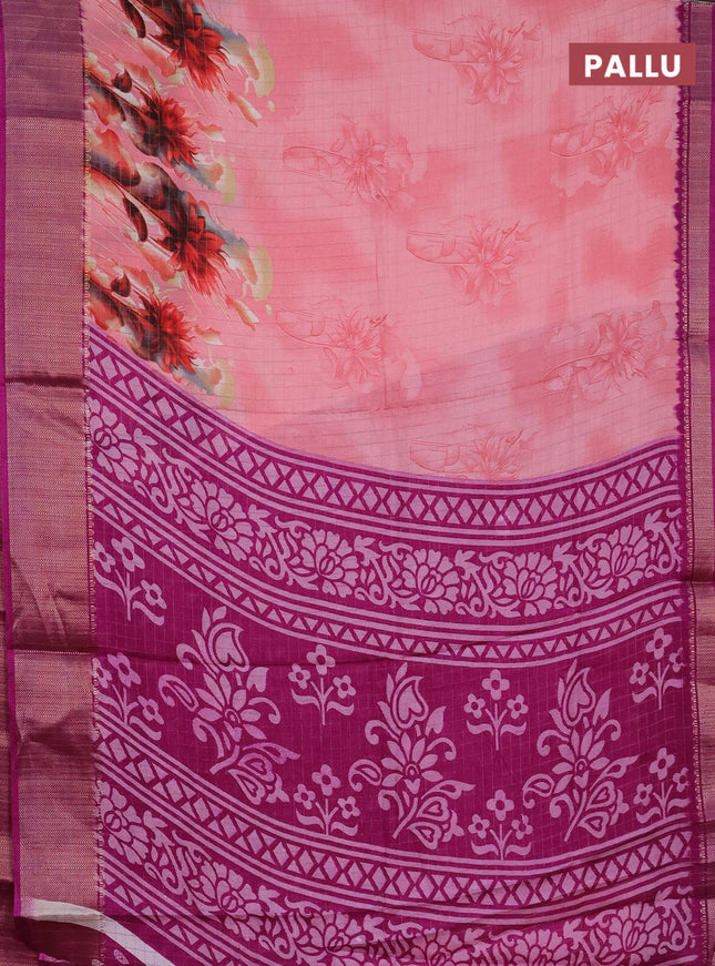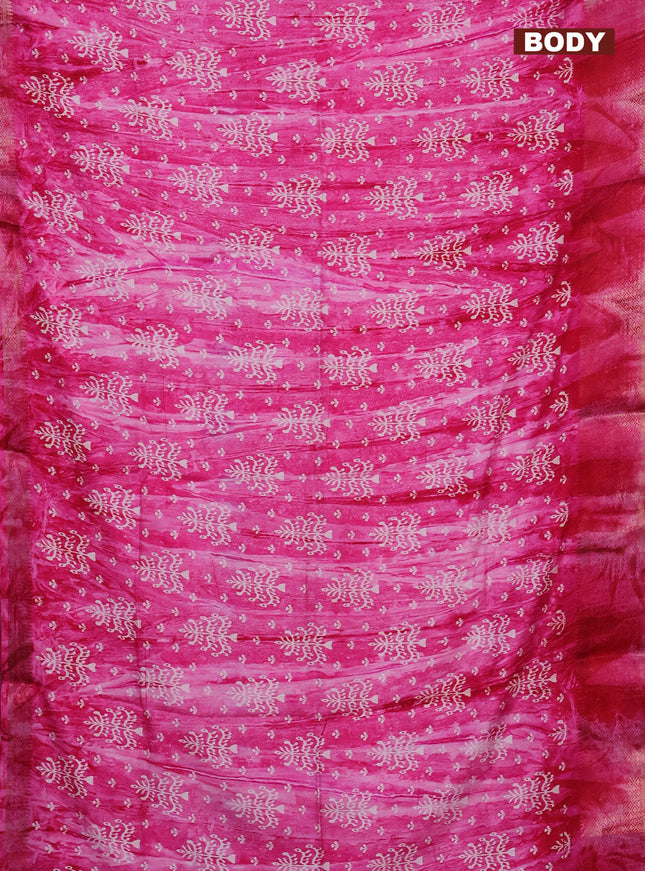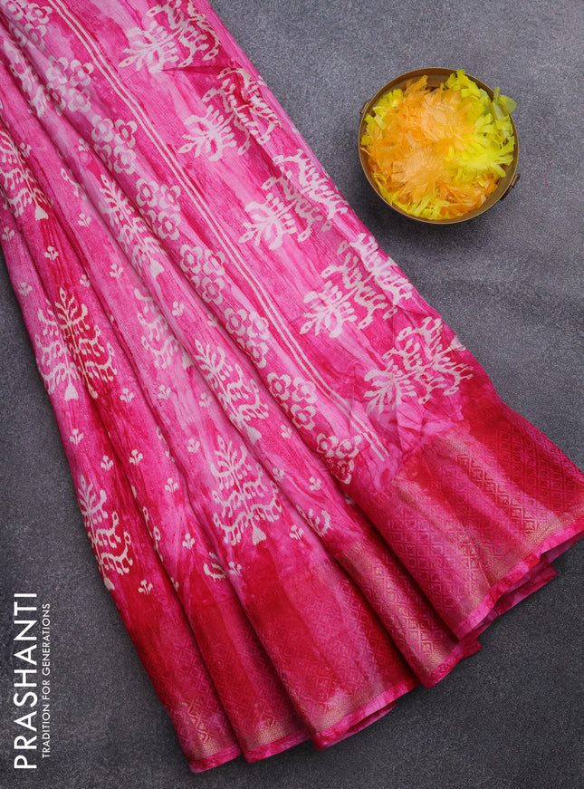Semi dola saree pink with allover prints and za...