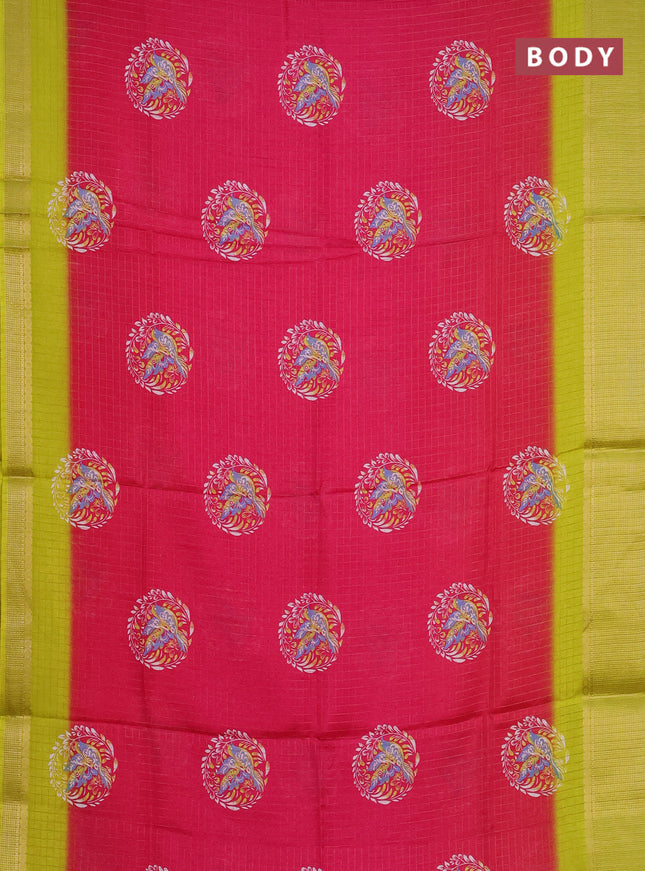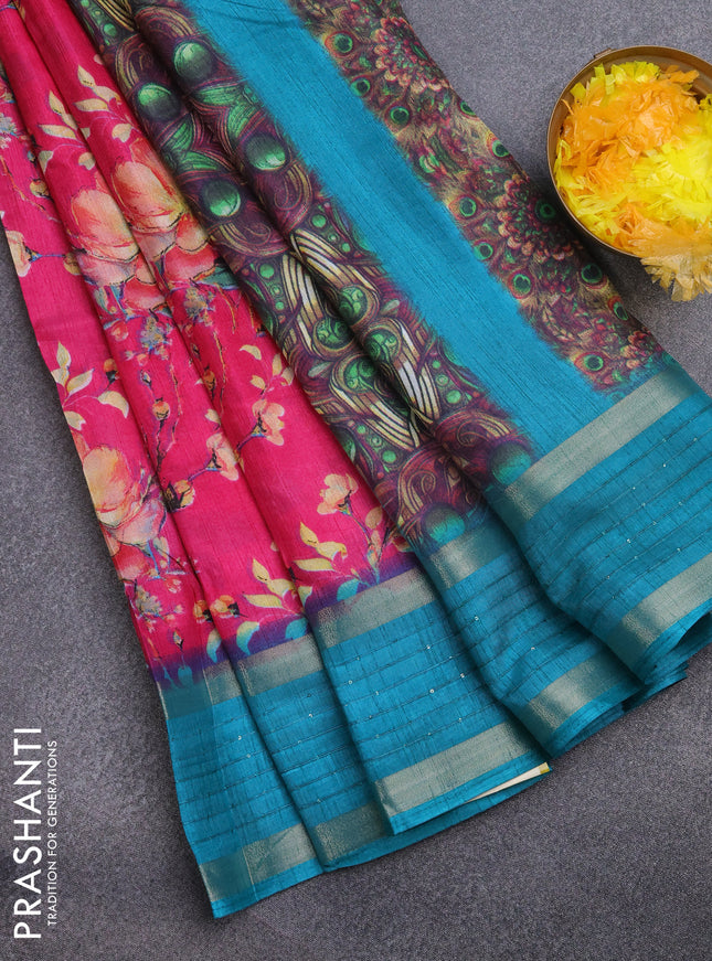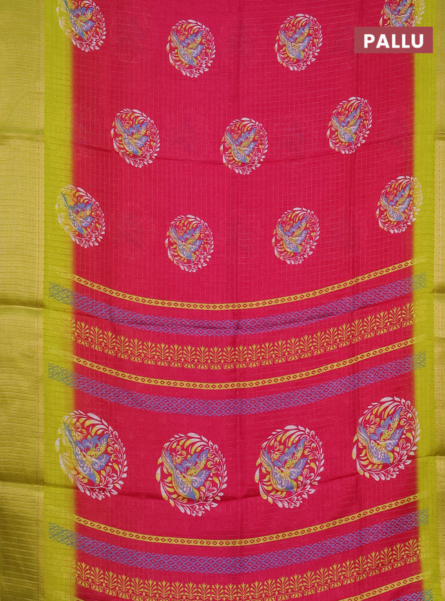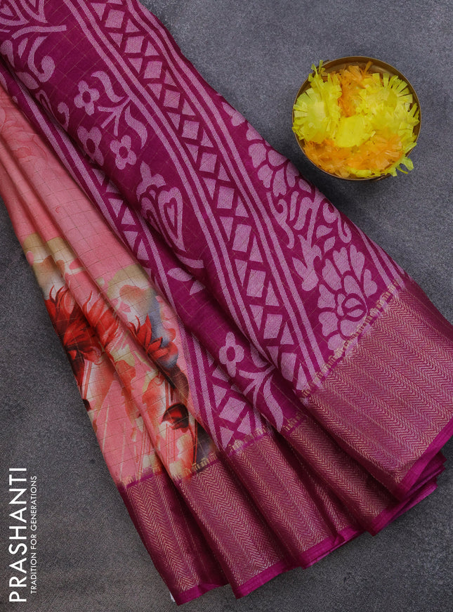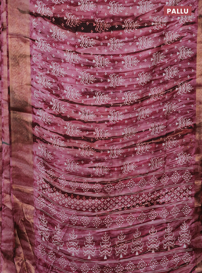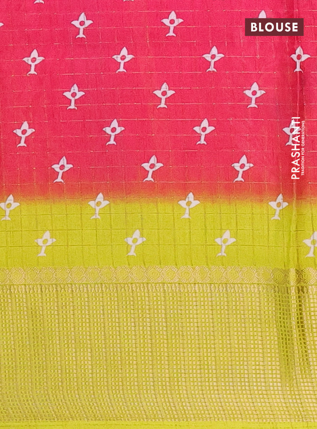 Semi dola saree pink with allover prints and za...