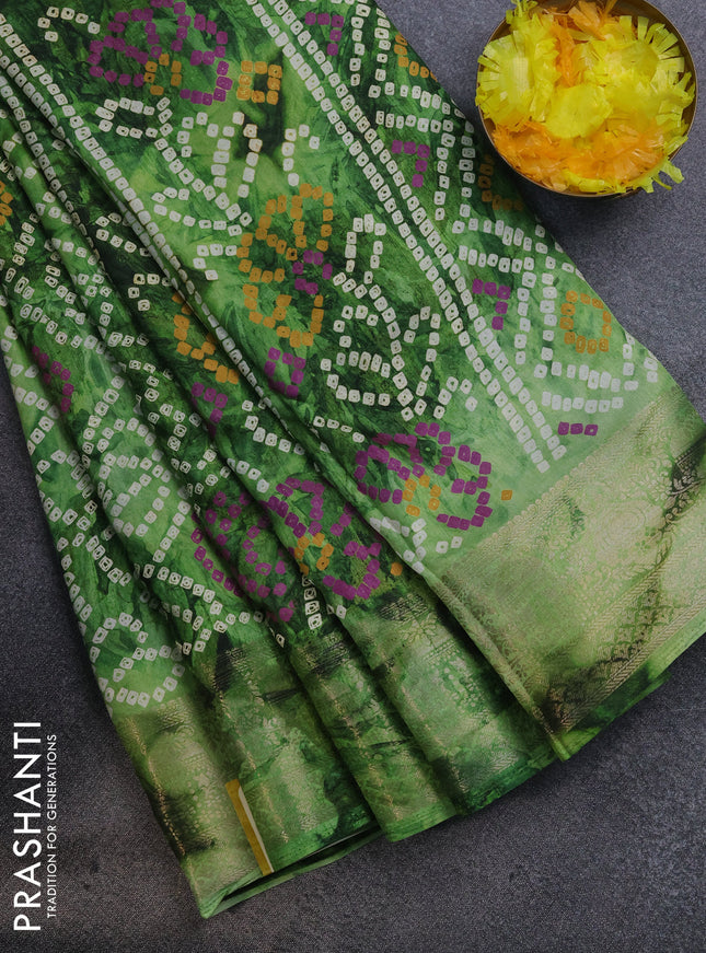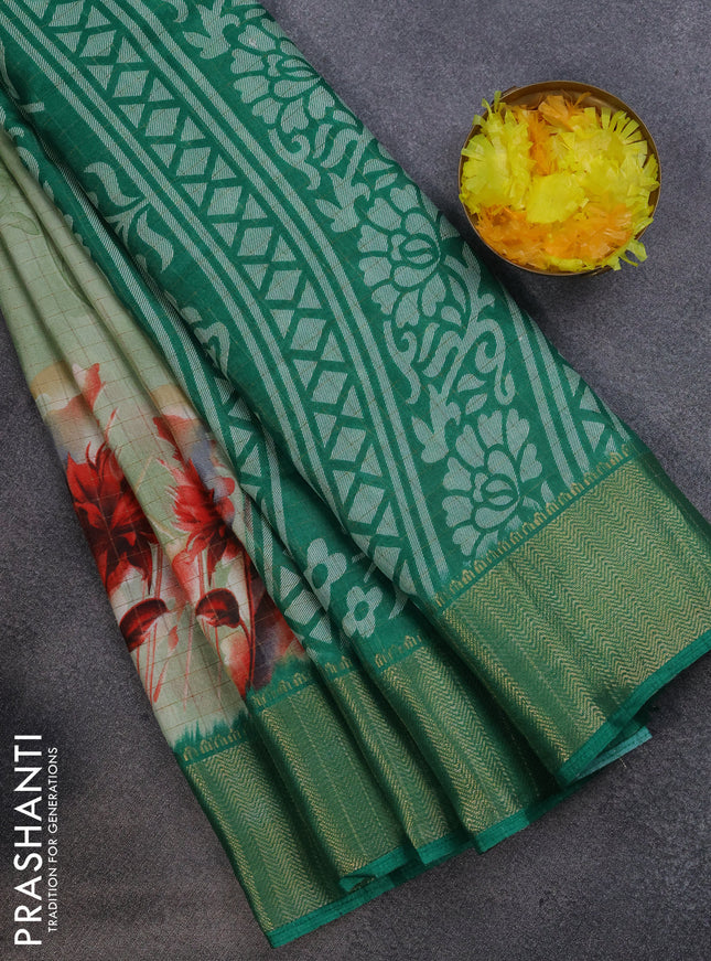 Semi dola saree green with allover prints and z...