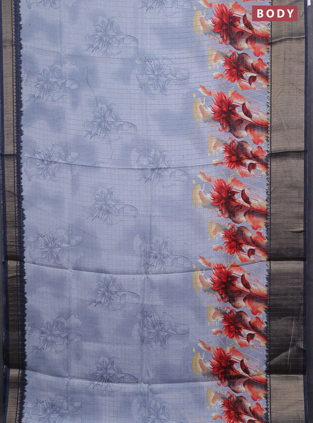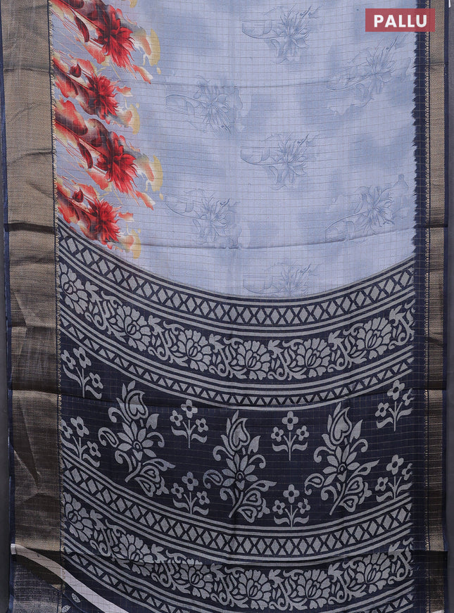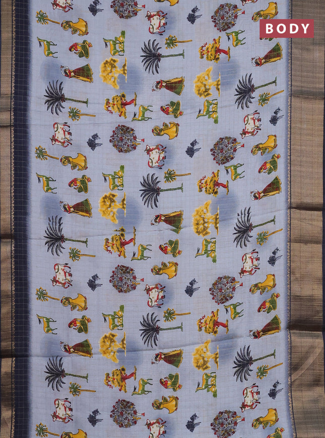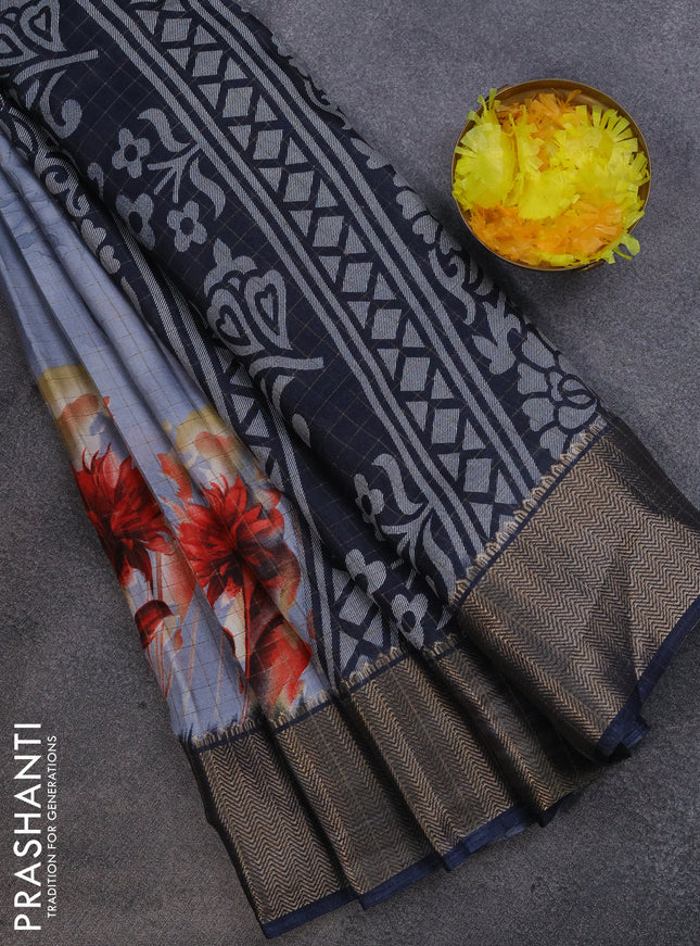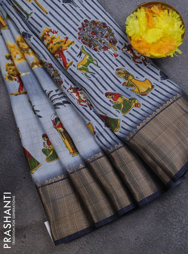 Semi dola saree bluish grey with allover ikat p...