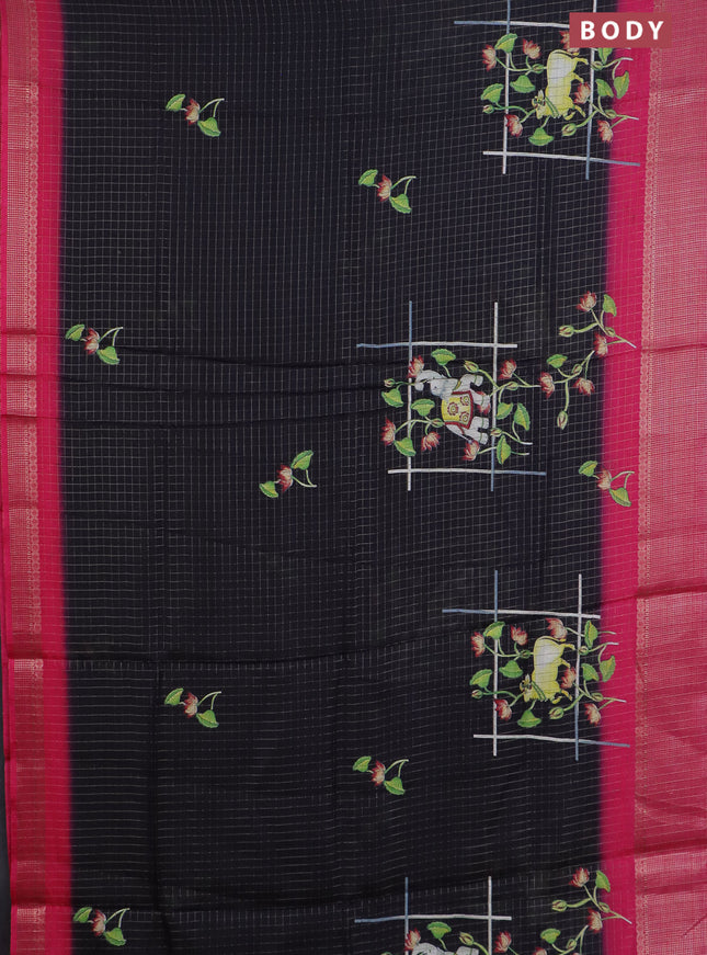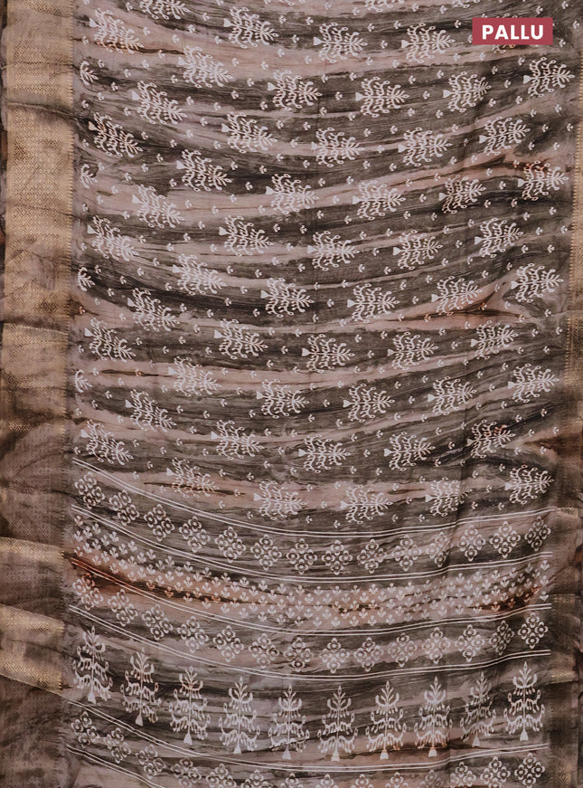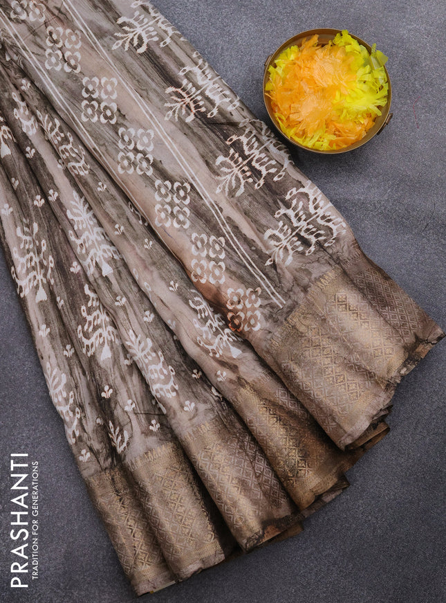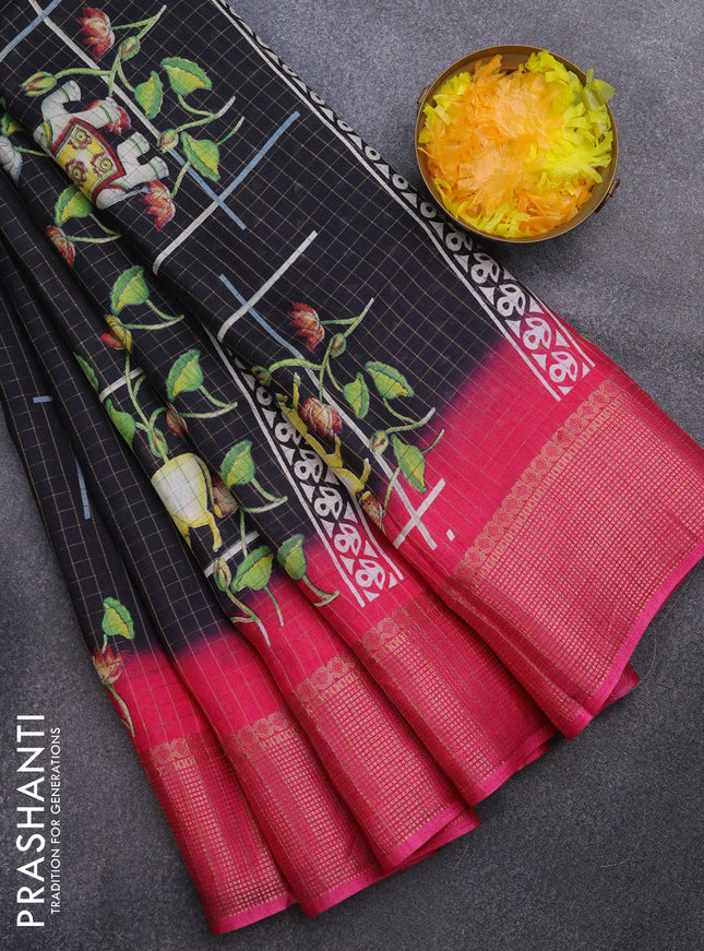Semi dola saree black with allover prints and z...