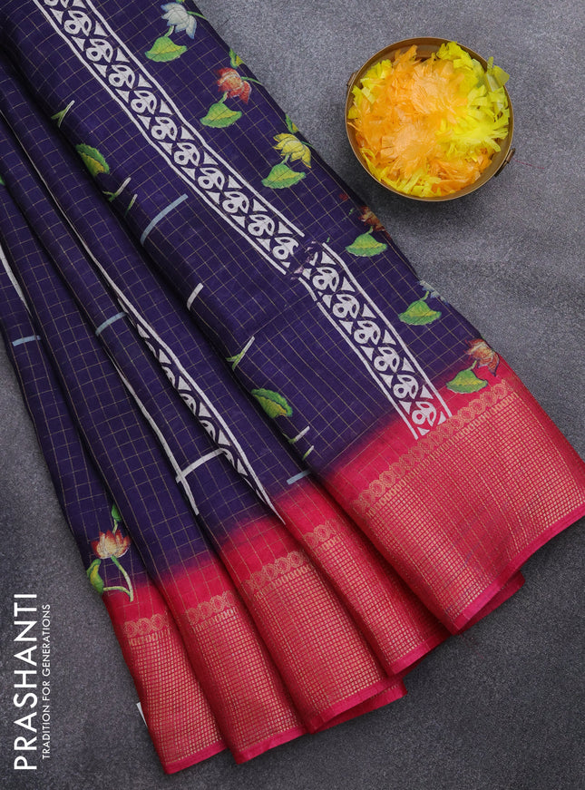 Semi dola saree navy blue and pink with allover...