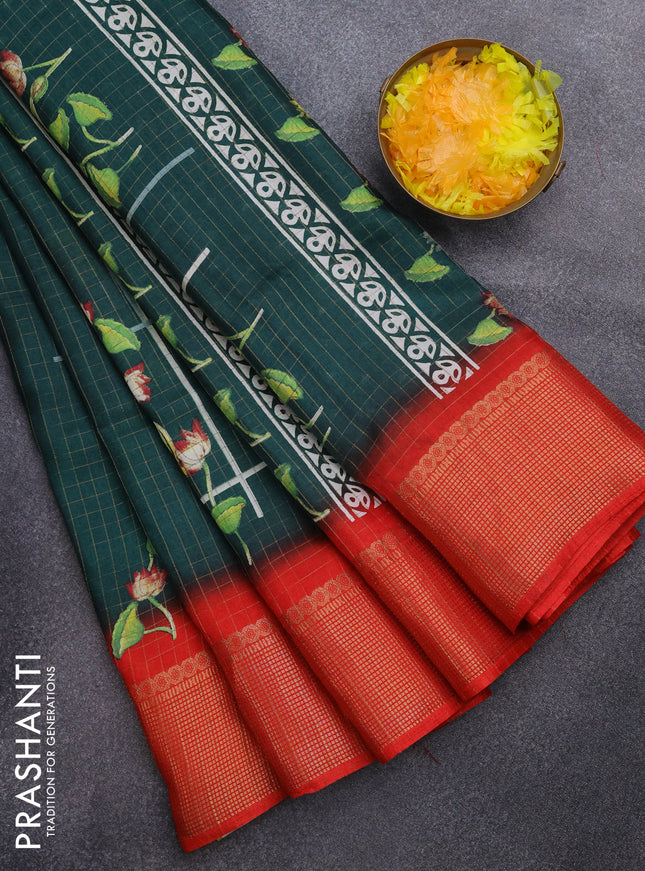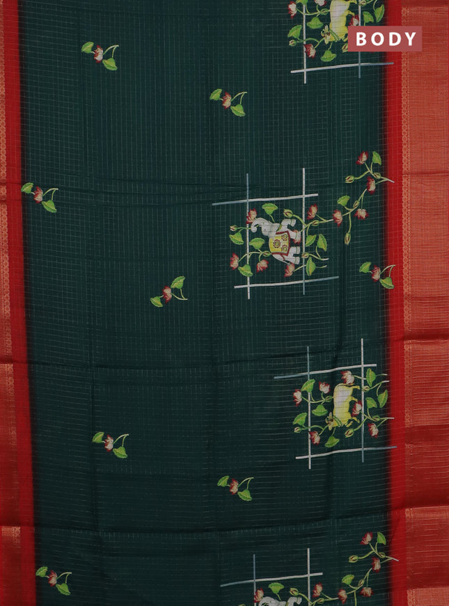 Semi dola saree dark green with allover butta p...