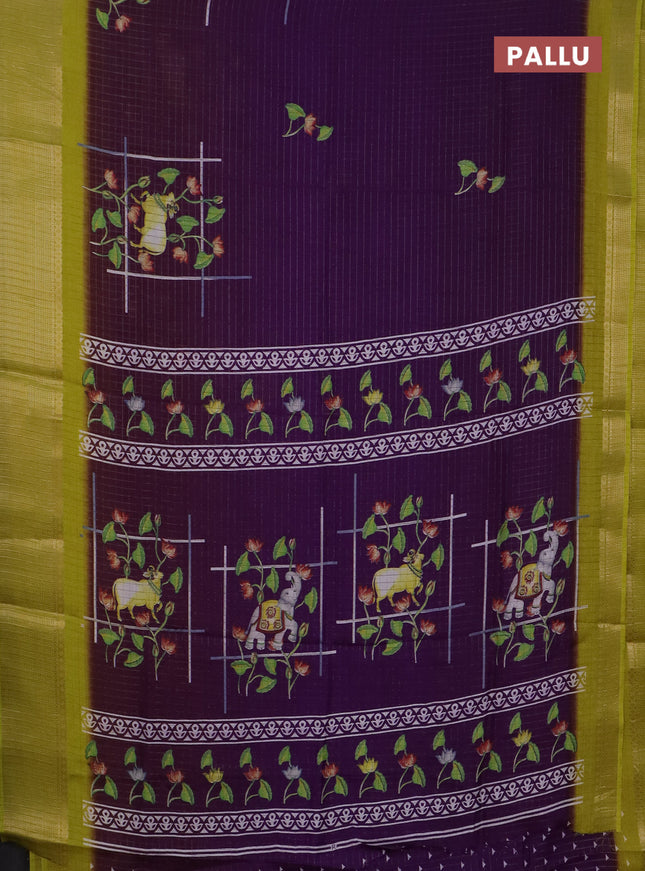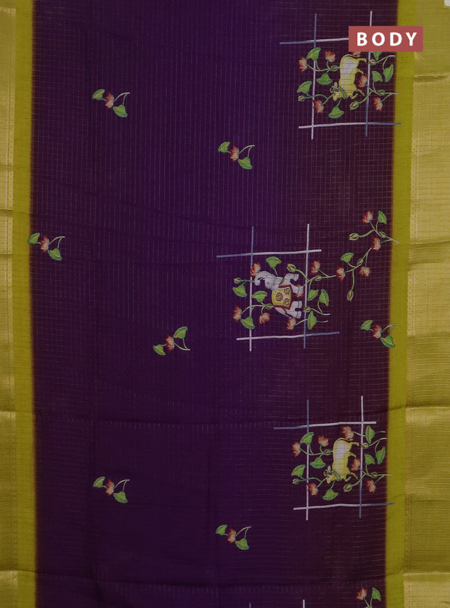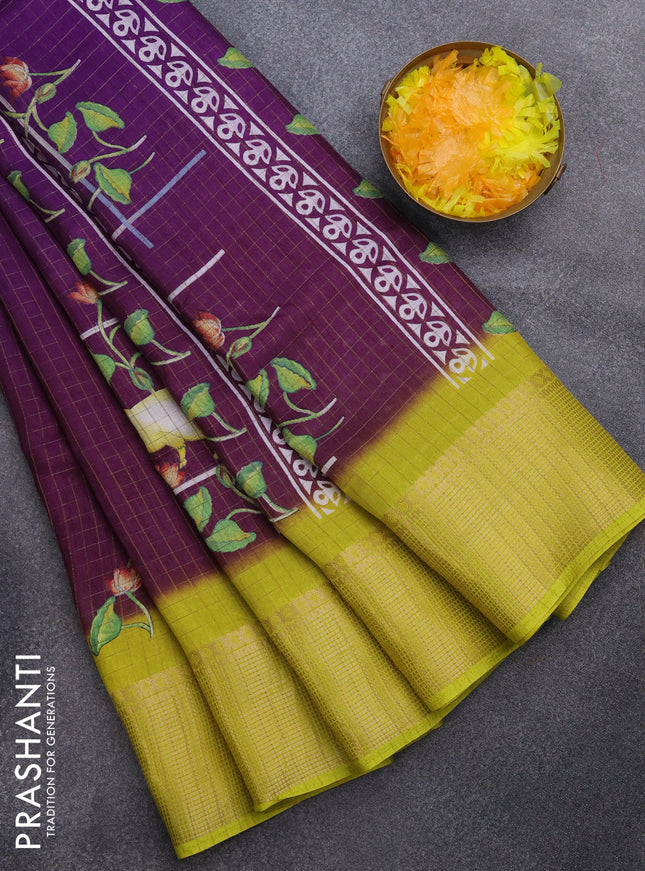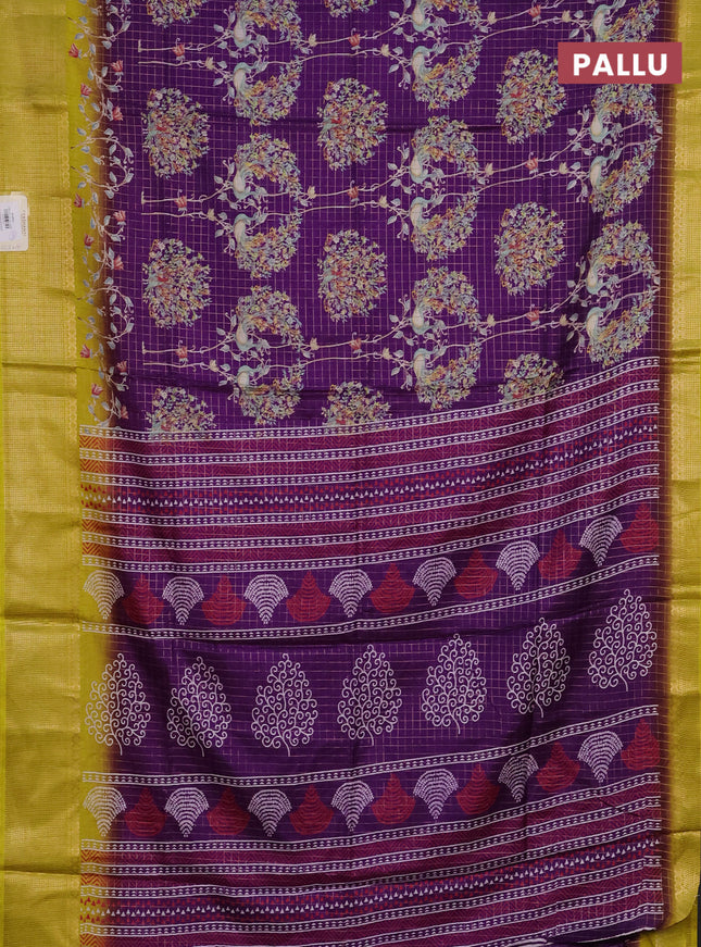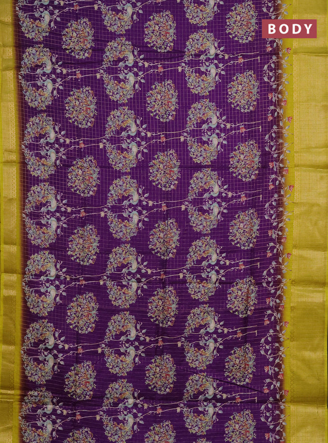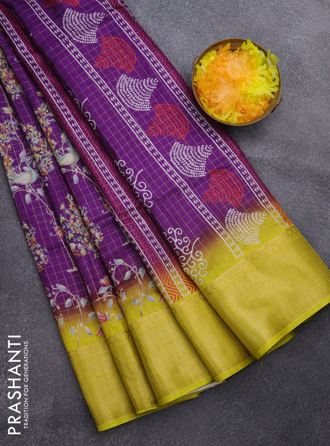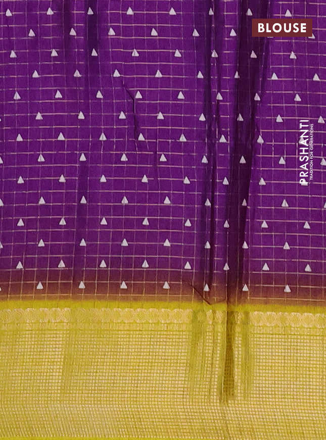 Semi dola saree violet and yellow with allover ...
